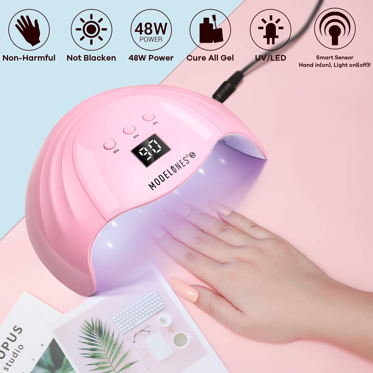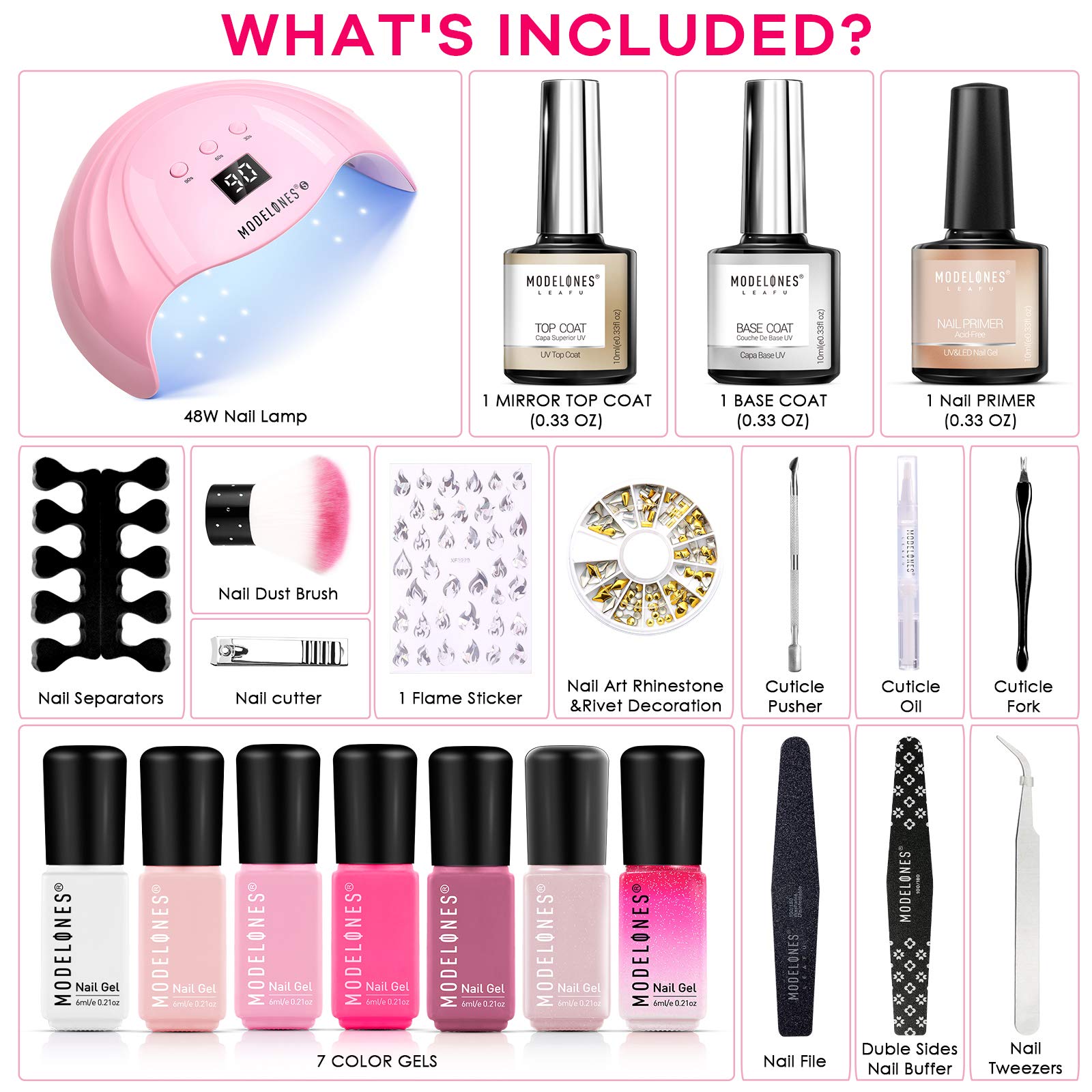 Modelones Gel Nail Kit Gel Nail Polish Kit with 48W U V/LED Light - 7 Colors Pink Series Gel Nail Polish Set, Stater Kit for Gel Manicure Beginner Nail Art Lover, Fashion Packaging for Gift Set