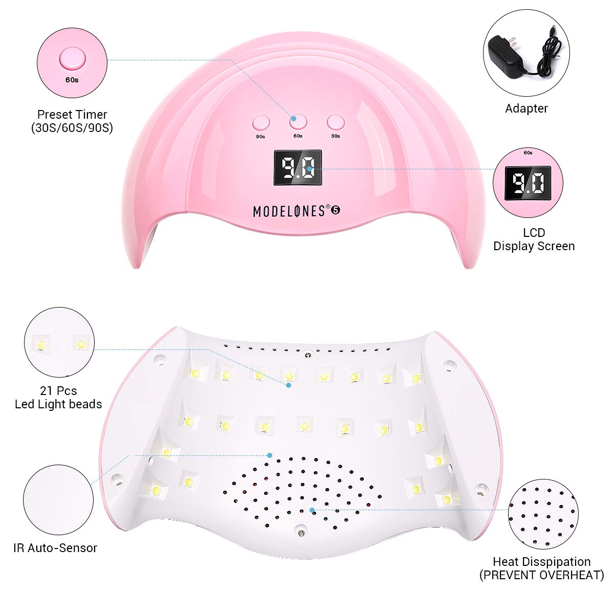 • ★48W CURE LAMP: 48W high power can efficiently cure all kinds of gel nail polish. An innovative LED display screen presents you an efficient/safe/convenient home manicure machine.
