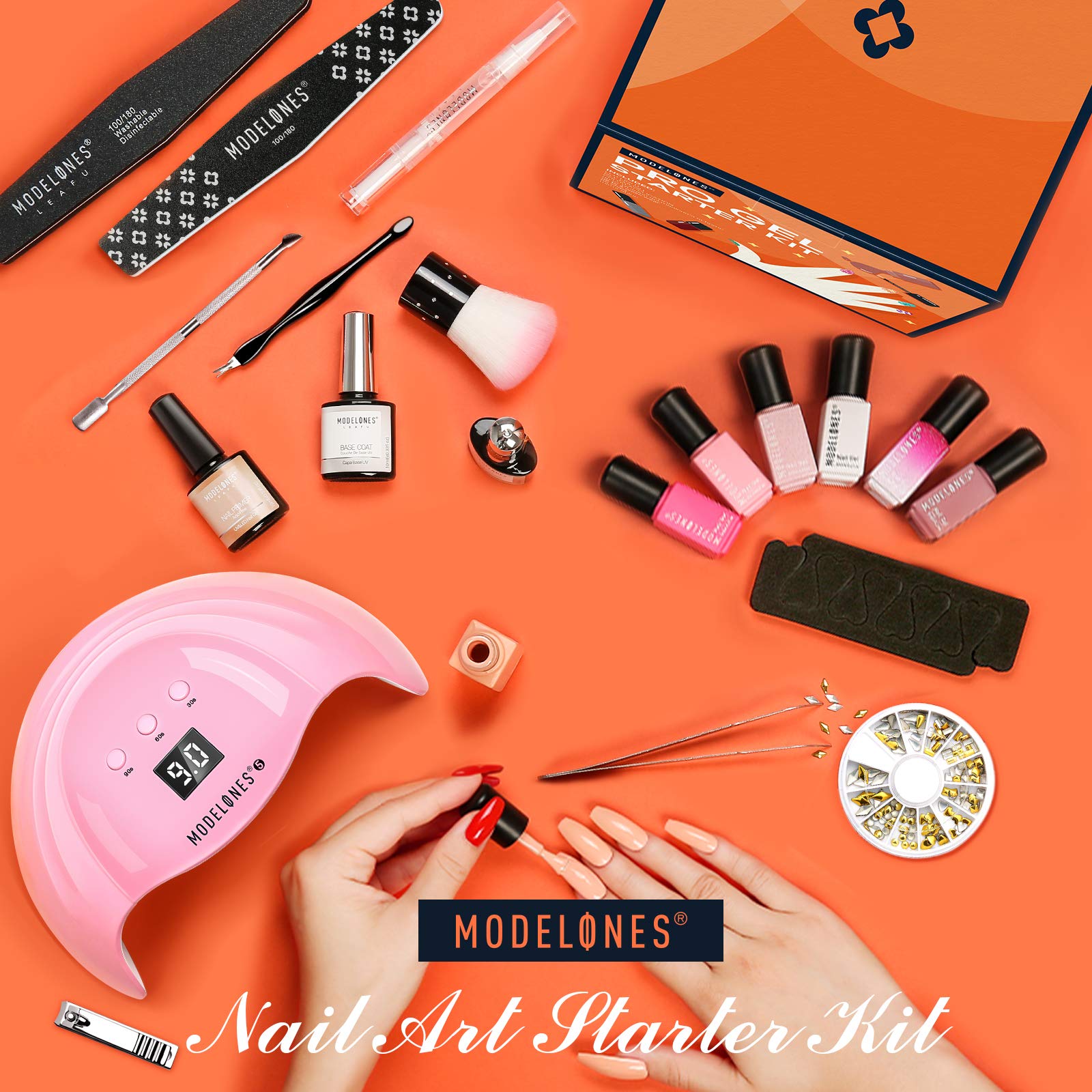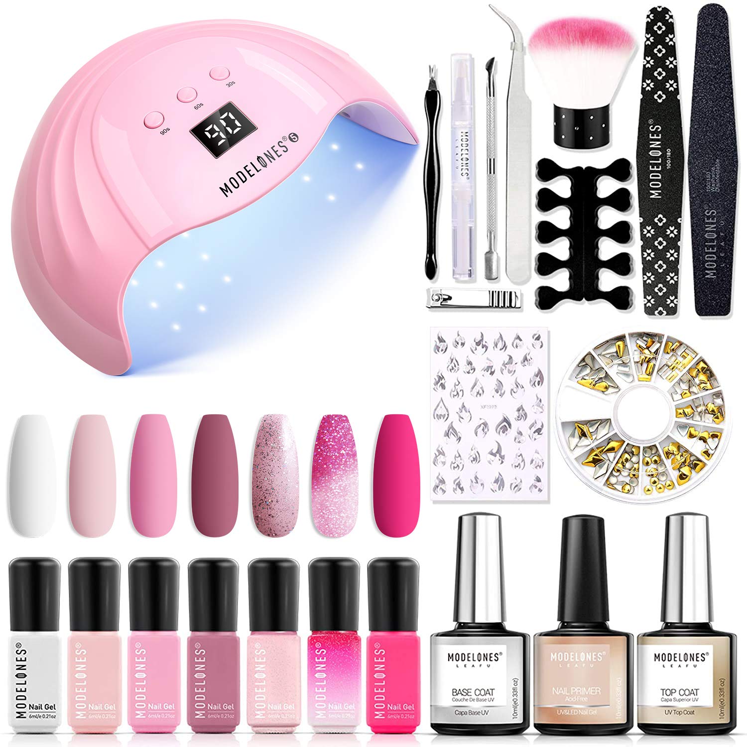 Modelones Gel Nail Kit Gel Nail Polish Kit with 48W U V/LED Light - 7 Colors Pink Series Gel Nail Polish Set, Stater Kit for Gel Manicure Beginner Nail Art Lover, Fashion Packaging for Gift Set by modelones Store
