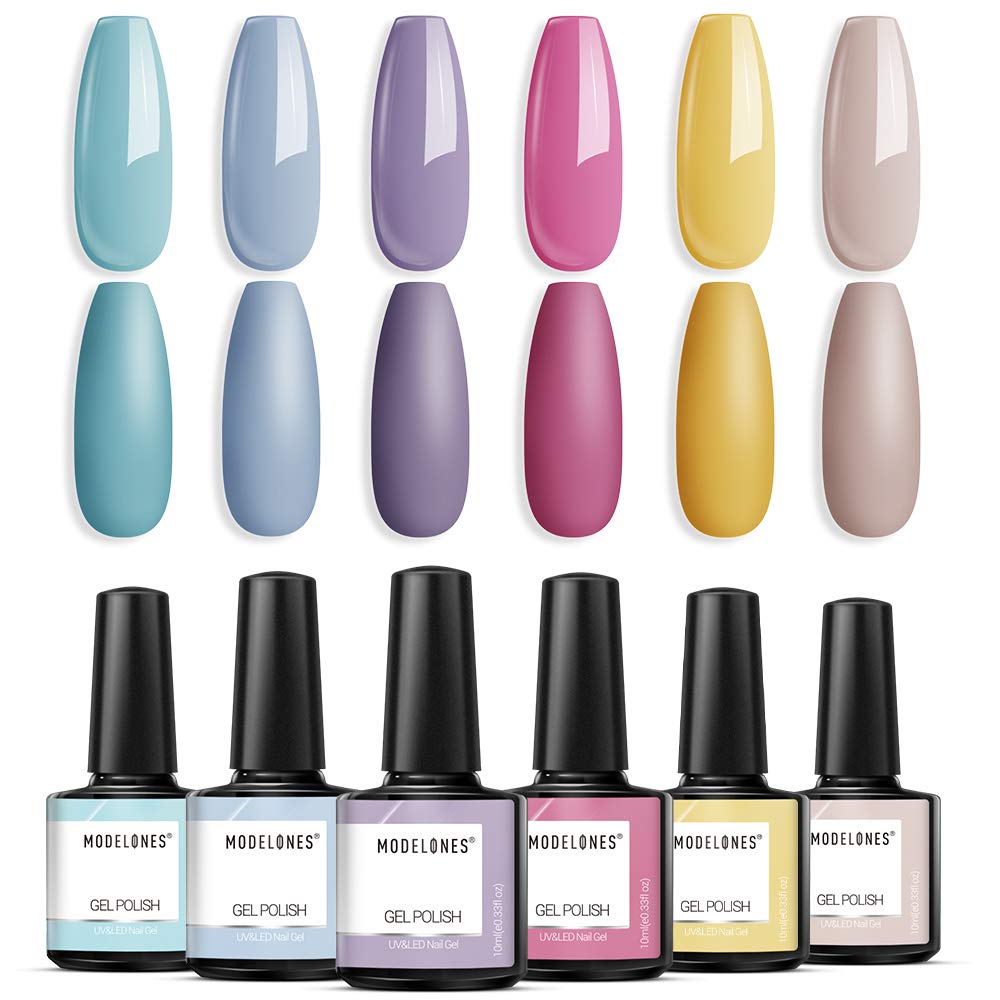 Modelones Pastel Gel Nail Polish Set - Yellow Pink Blue Purple Cotton Candy Rainbow Gel Nail Polish Soak Off Nail Lamp Gel for Nail Art Gel Vanish Manicure Starter Kit 6 Colors 0.33 OZ by modelones Store