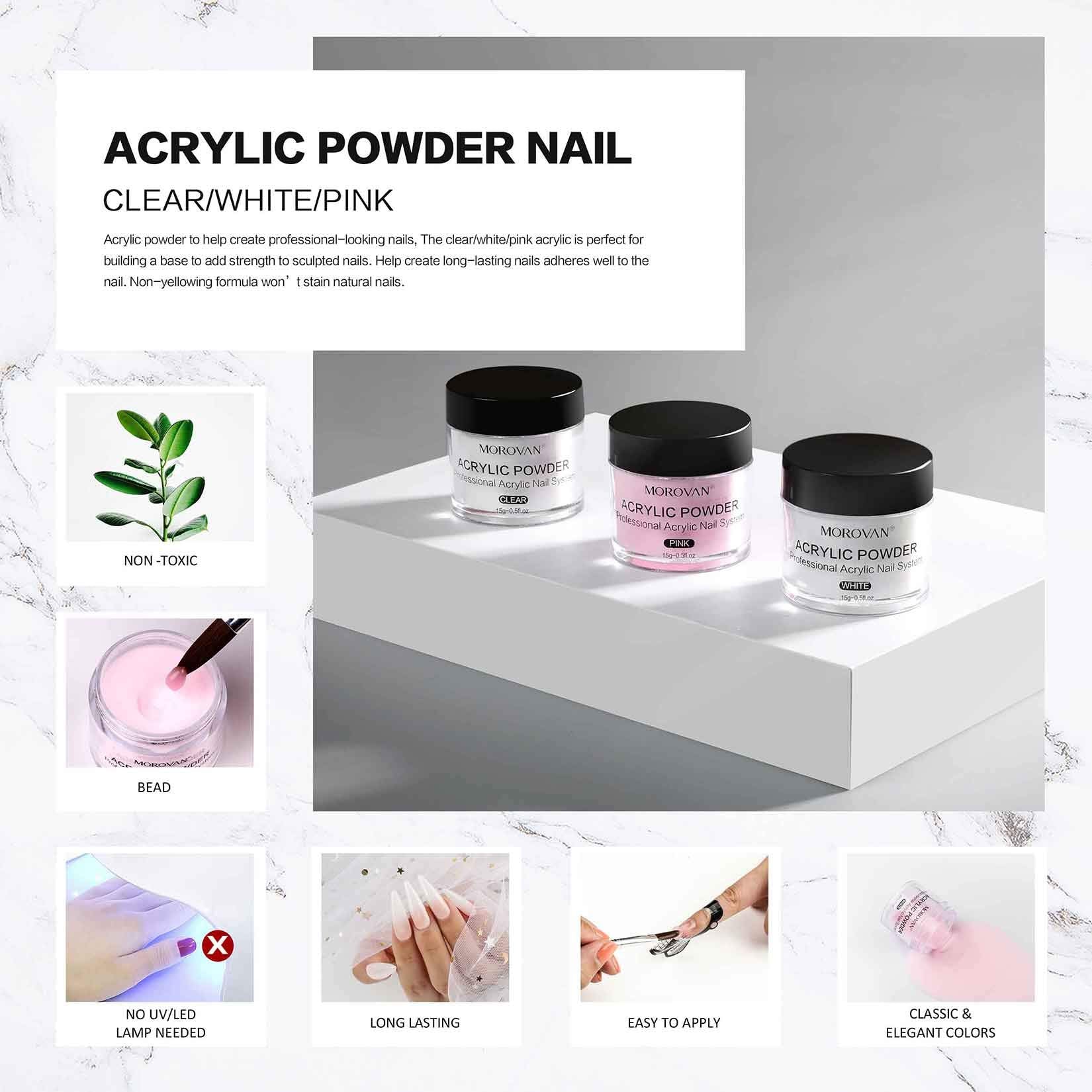 - Morovan Service: we promise to provide all our customers with excellent acrylic nail kit and services. If there are any problems with The acrylic nail kit, please does not hesitate to contact us and we will try our best to help you solve the problem. please go ahead and make the purchase with full confidence. we offer replacement or refund service. Enjoy Your Shopping~