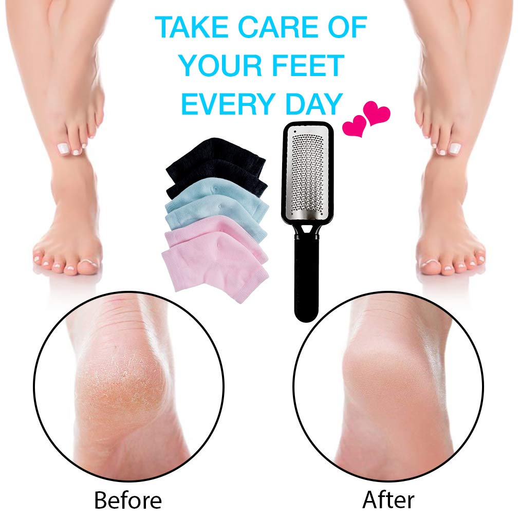• ❤ ALTERNATE USE: Package contains 3 pairs of heel moisturizing socks, enough for your replacement in daily life; 3 pair with Solid colors: pink, turquoise and black and 1 foot file