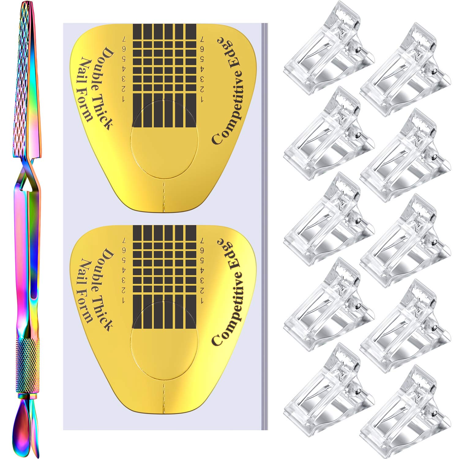 Nail Art Pincher Cuticle Pusher False Nail Shaping Tweezers with 10 Pieces Nail Tips Clips and 100 Pieces Horseshoe-shaped Nail Extension Tips Polygel Acrylic Nail Form Guide Stickers for Nail Art