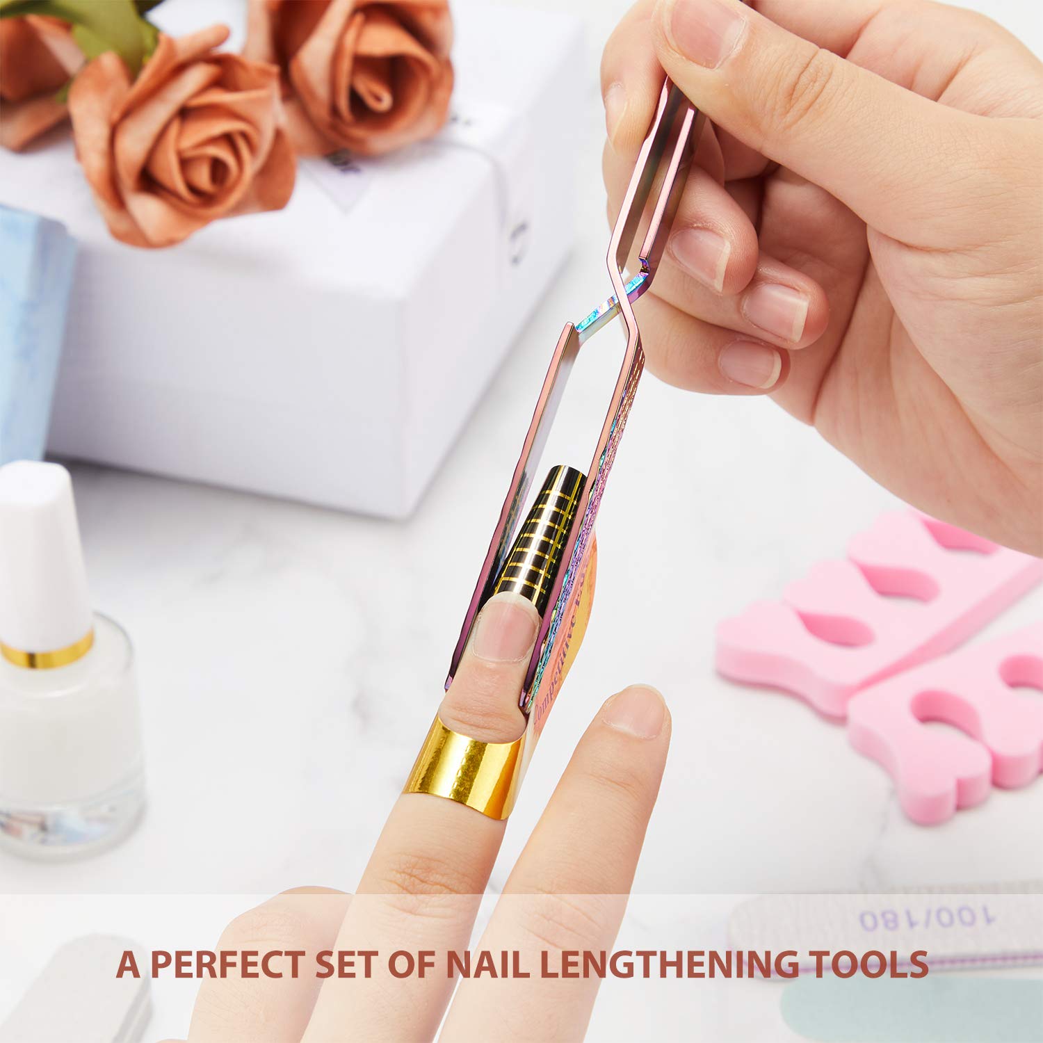 Nail art pincher cuticle pusher false nail shaping tweezers with 10 pieces nail tips clips and 100 pieces horseshoe-shaped nail extension tips polygel acrylic nail form guide stickers for nail art 3 Types of nail extension tools: The package includes 3 types of nail extension tools, including nail pincher tweezer, nail tips clips and nail form stickers, they serve for different purposes to achieve a great nail extension. A nice combination of tools for DIY nail art easily at home. Practical nail tool: The stainless steel tweezer is sturdy and durable with good toughness, rust and abrasion resistance, a practical nail tool for cleaning your nail bed and cuticles, which lays a foundation for achieving better nail art effect. DIY your nail art: This nail extension set is suitable for nail salon, manicure shop or personal home DIY nail art, which allows you to DIY your nail art designs at home while saving a lot of time and effort. DIY your nail art will also bring much fun and sense of achievement after finishing. Specifications: Nail tips clip Material: acrylic Color: transparent Size: 3.6 x 2.9 x 1.7 cm/ 1.42 x 1.14 x 0.67 inch Nail extension tip Material: paper Color: gold Size: 5.5 x 5.8 cm/ 2.17 x 2.28 inch Nail art pincher Material: stainless steel Color: colorful Length: 18.2 cm/ 7.17 inch Package: bag Package includes: 1 x Nail art pincher 10 x Nail tips clips 100 x Horseshoe-shaped nail extension tips Warm notice: Since the size above is measured by hand, the size of the actual item you received could be slight different from the size above.