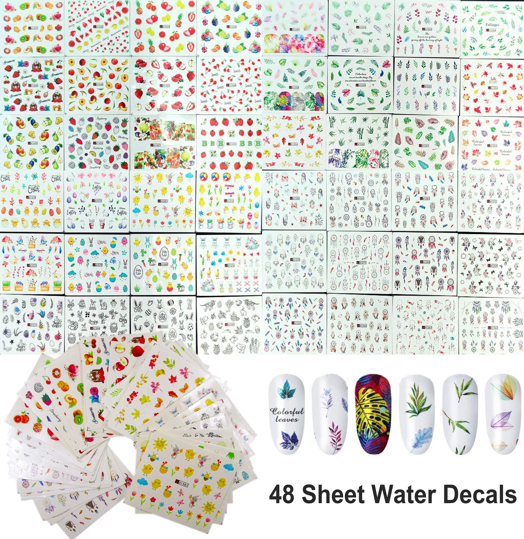 • Come with 48pc x Nail Decals(with different designs), 5pc x Nail Decoration Stones (With different shapes), 5pc/set x Nail Dotting Pen, 5Pcs x Nail File Sticks, 1Set x Nail Stamping Sponge.