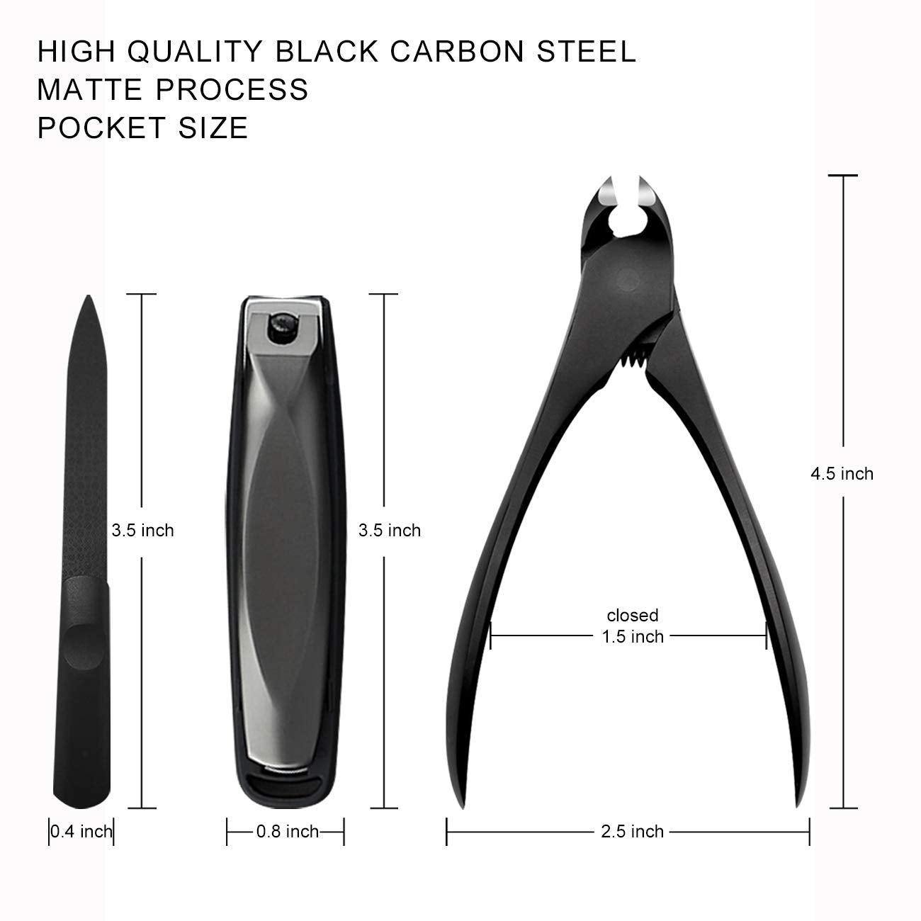 Nail Clippers KookTool Nail Cutter Set 3 pcs, for Ingrown Fingernail & Toenail, Hard&Thick Nail, for Men & Women's Beauty and Health, Nail Cutter & Nail Plier & Nail File, Black Carbon Steel