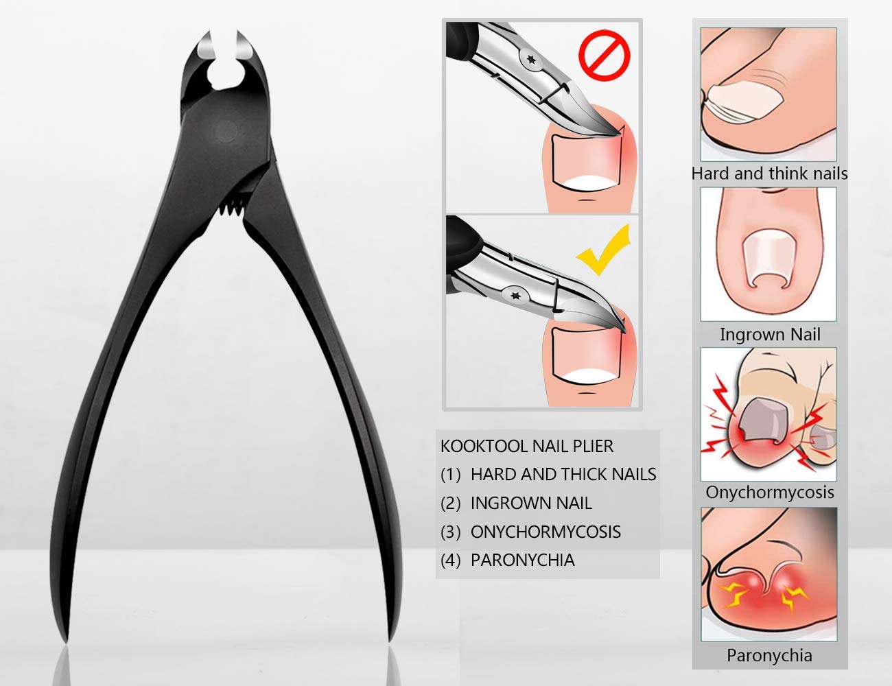 • 💎【Ingrown Toenail and Fingernail Tools】KookTool Nail Plier help to ameliorate some nail problems after professional treatment, such as hard and thick nail, ingrown nail, onychomycosis and paronychia, etc.