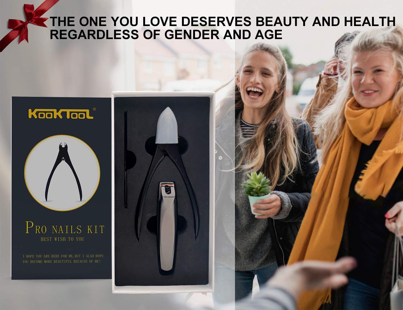 **KookTool Nail Clippers Set** Makes your finger and toe beautiful and healthy **💞Love can be seen 💞** Love is not only the words but also the visible actions. A warmful gift definitely makes the one you love happy and surprise. **3 warmful and useful KookTools** **🌹KookTool Nail Plier** ameliorate some nail problems after professional treatment, such as hard and thick nail, ingrown nail, onychomycosis and paronychia, etc. **🌹KookTool Nail Cutter** trim easily with sharp blade. **🌹KookTool Nail File** makes your nail shape beautiful. **Box Contains:** ⭐1 x KookTool Nail Plier (Black Carbon Steel, Matte Black) ⭐1 x KookTool Nail Cutter (Black Carbon Steel, Matte Black) ⭐1 x KookTool Nail File (Black Carbon Steel, Matte Black) ⭐1 x Using Advice ⭐1 x Pretty Box