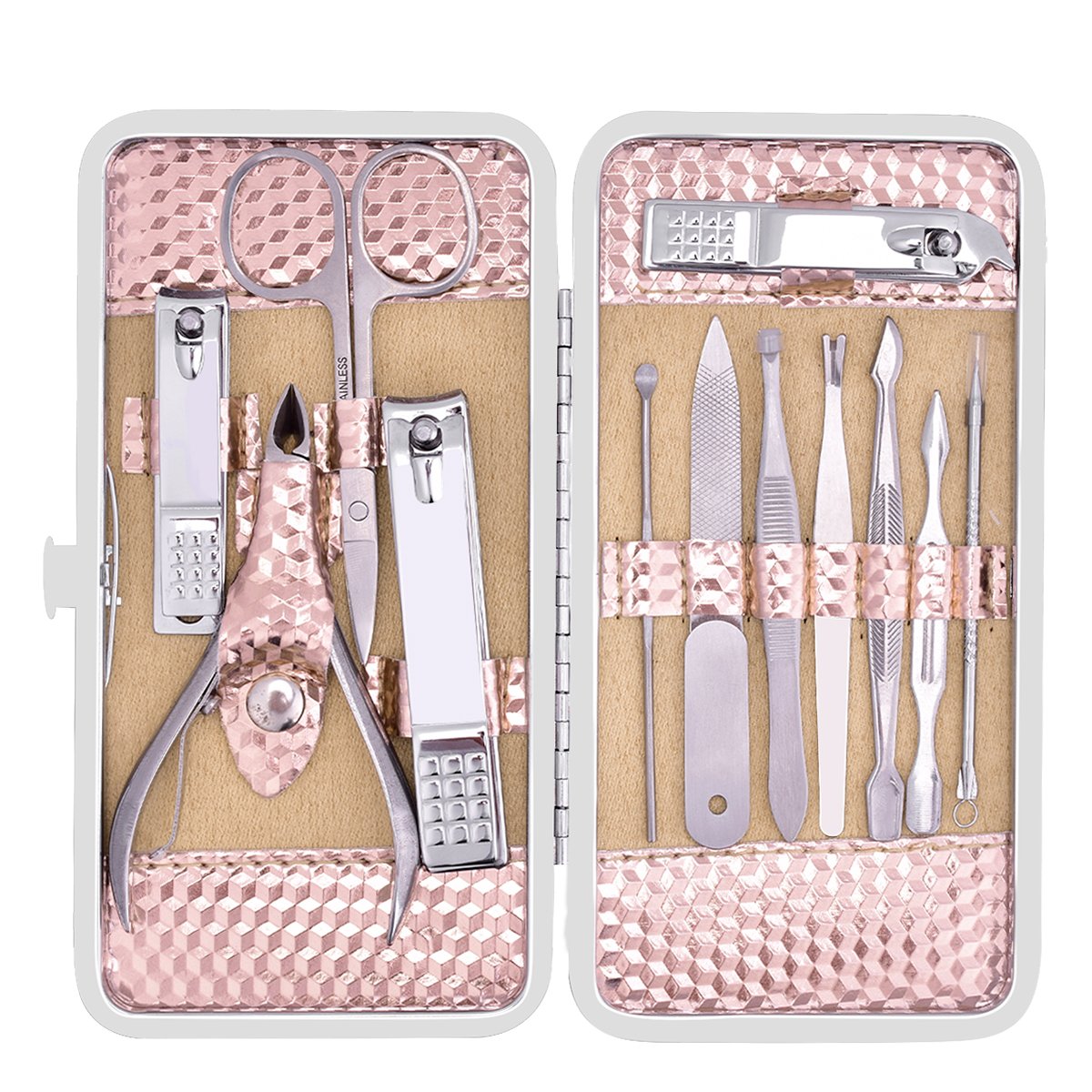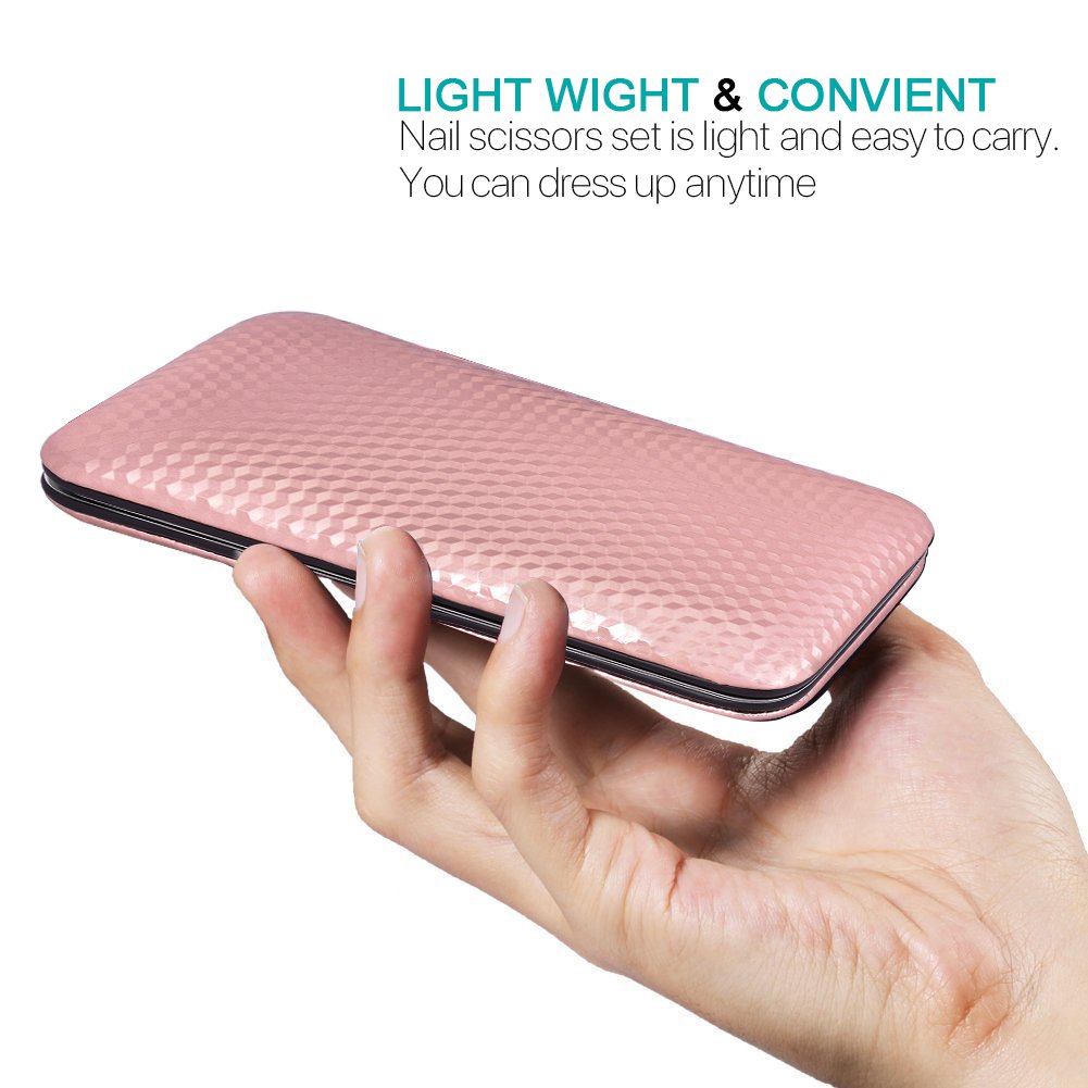 - 【SET INCLUDE】:12 Pcs of manicure tools, including 3 nail clippers / trimmers of different sizes, 1 multipurpose scissors, 1 pliers, 1 ear pick,1 cuticle trimmer, 1 eyebrow tweezer, 1 nail file, 1 cuticle knife, 1 acne needle, 1 dirt cleaning suppository.(The actual color of the case may be a little different from the picture.)