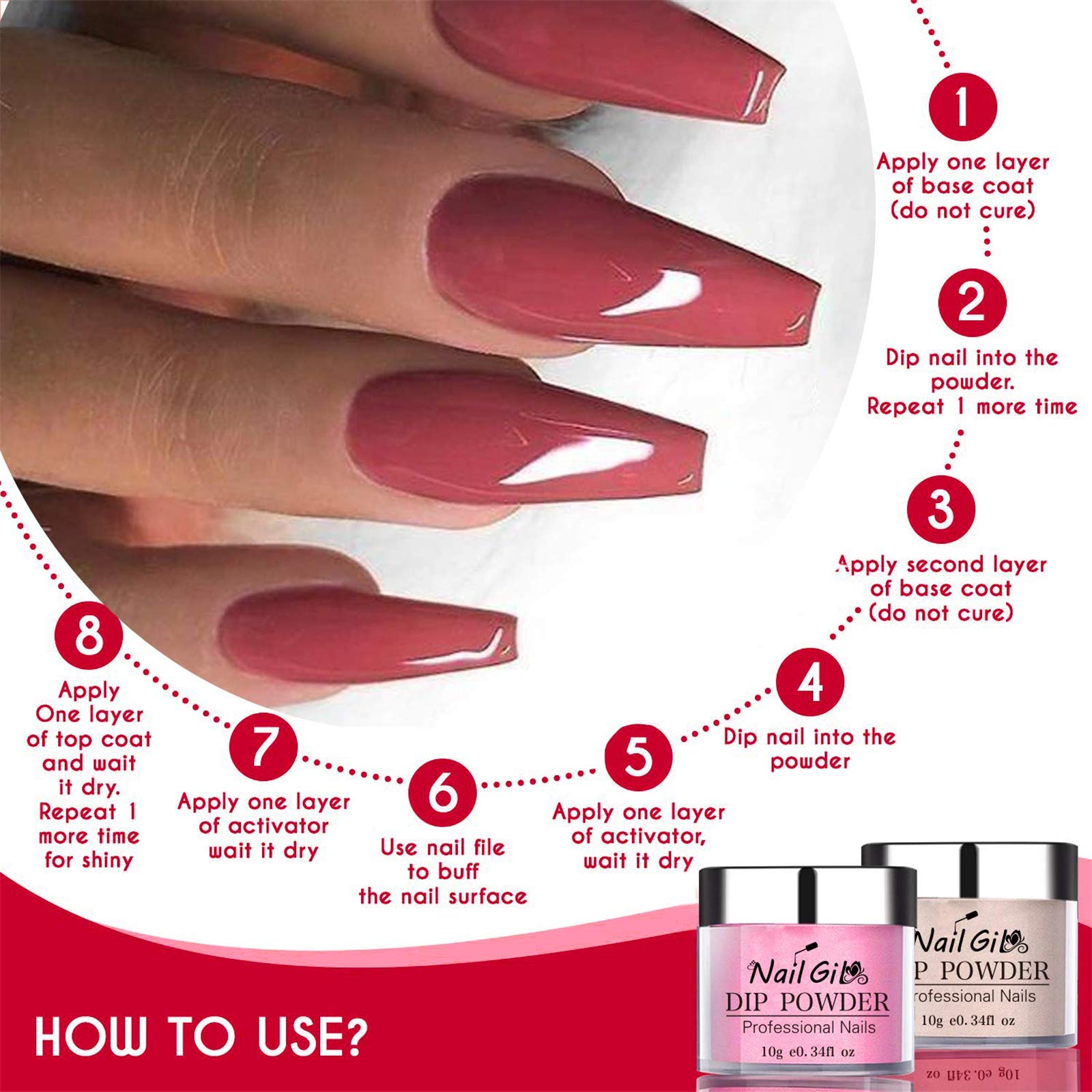 - ❤EASY TO APPLY: NAILGIL Dip powder is easy to apply. It just need 3-step dipping system to apply. it also takes about 30% less time to apply than acrylics. Ideal for both professional salons and beginner.
