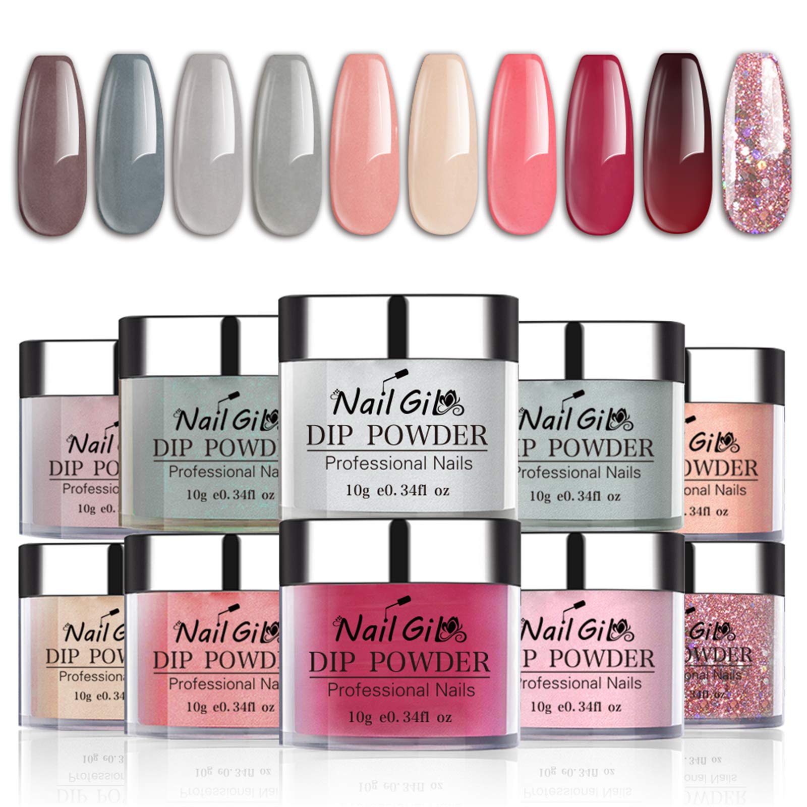 NAILGIL Dip Powder Kit Powder Refill Set- 10 Colors Dipping Powder Nail Starter Kit for Beginners No UV/LED Lamp Needed French Nail Manicure