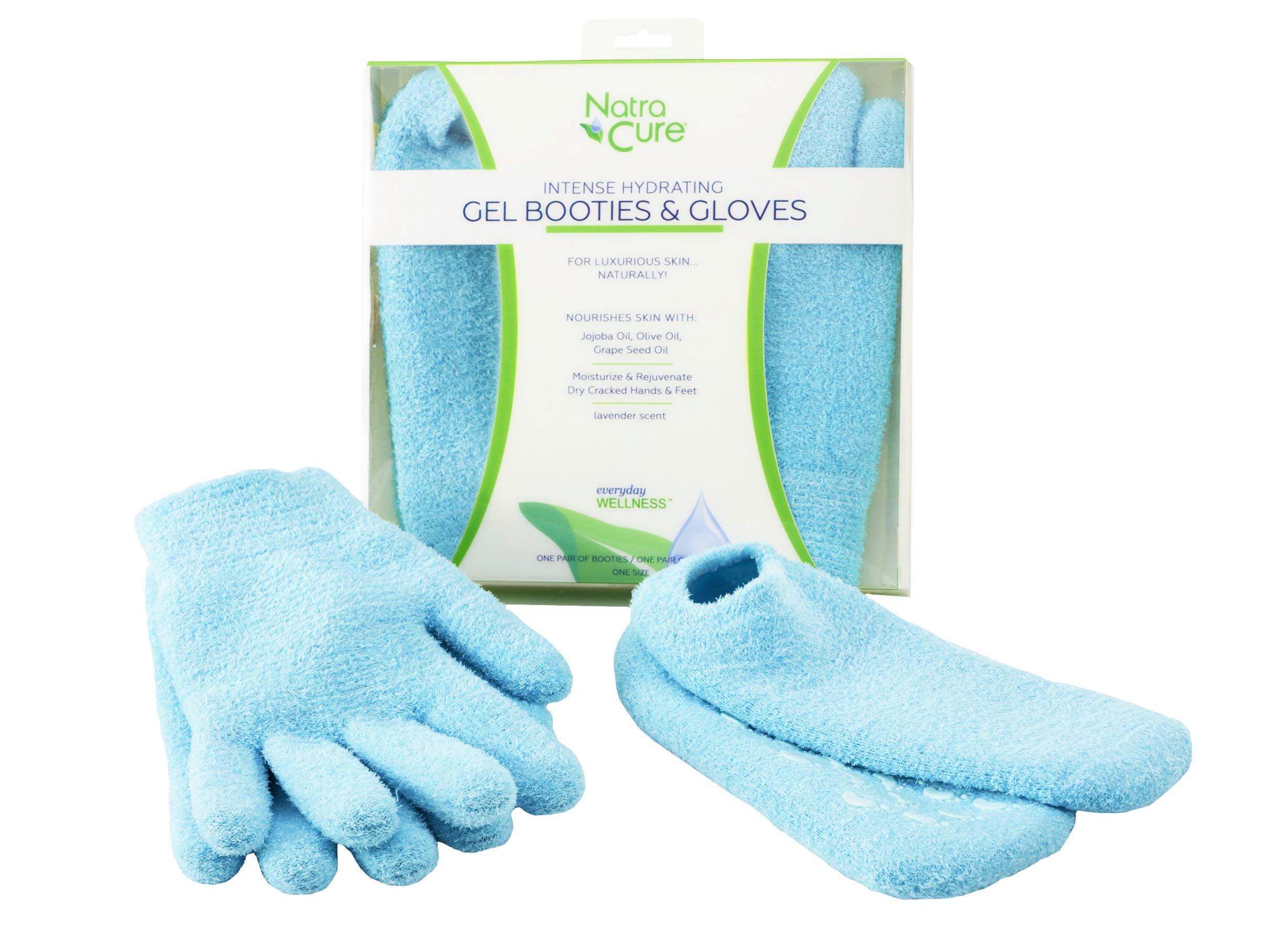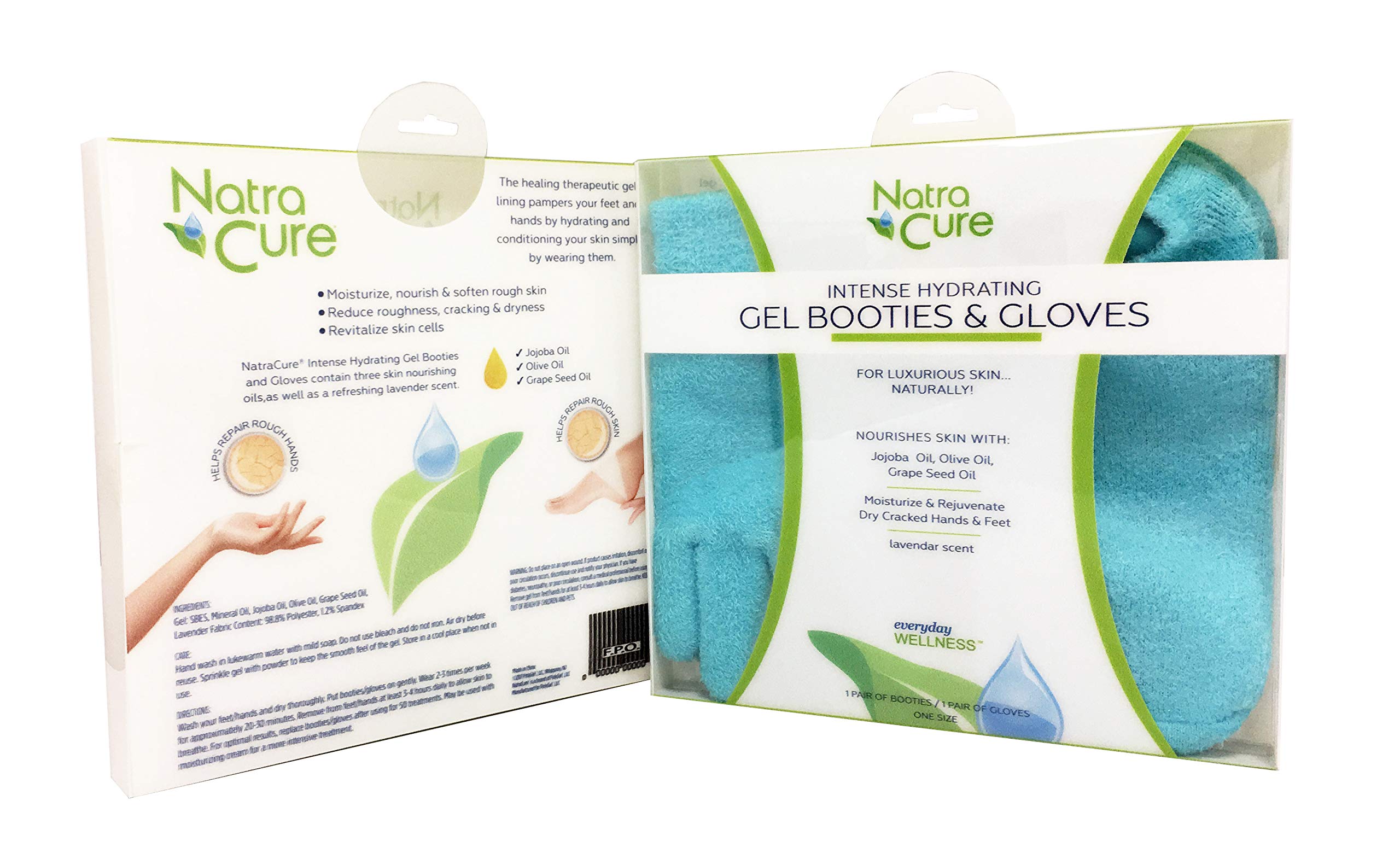 NatraCure Moisturizing Gel Booties and Gloves Set - (For dry skin, dry hands, feet, cracked heels, cuticles, rough skin, dead skin, use with your favorite lotions) - 155/175-AQ/RET - Color: Aqua