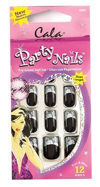 Party Nails Pre-Glued Nail Set 12pc Short Length Black Lace Rose