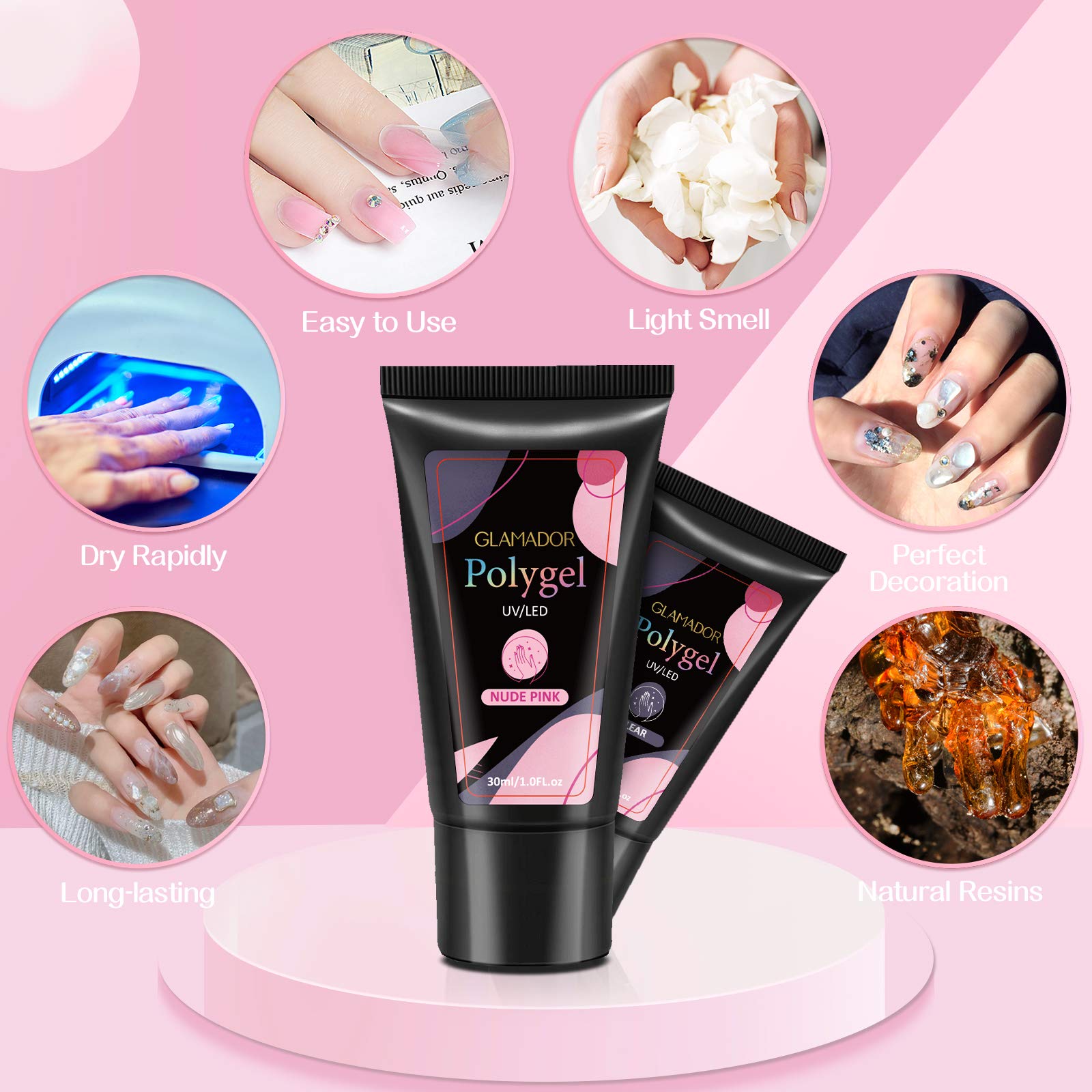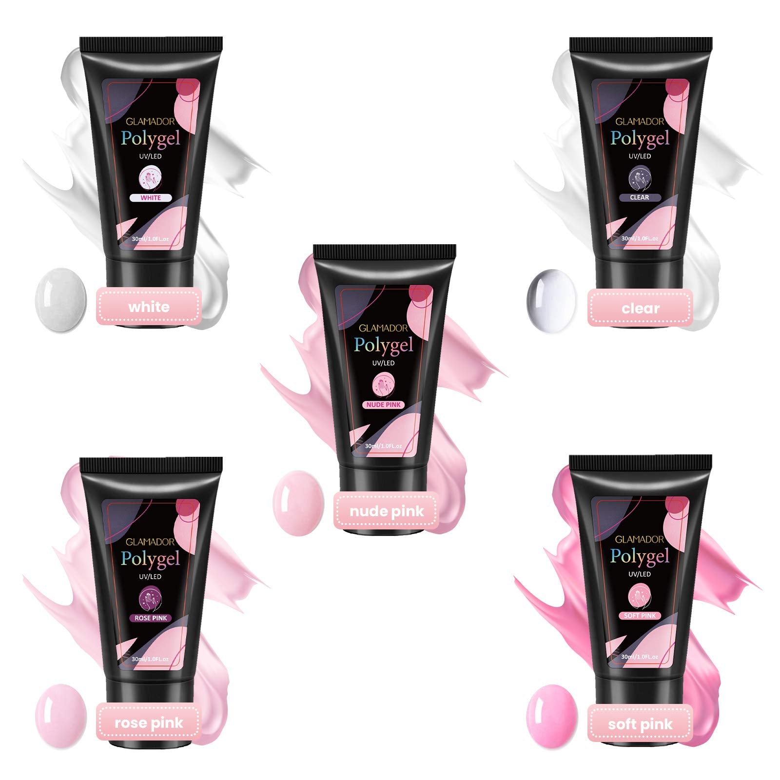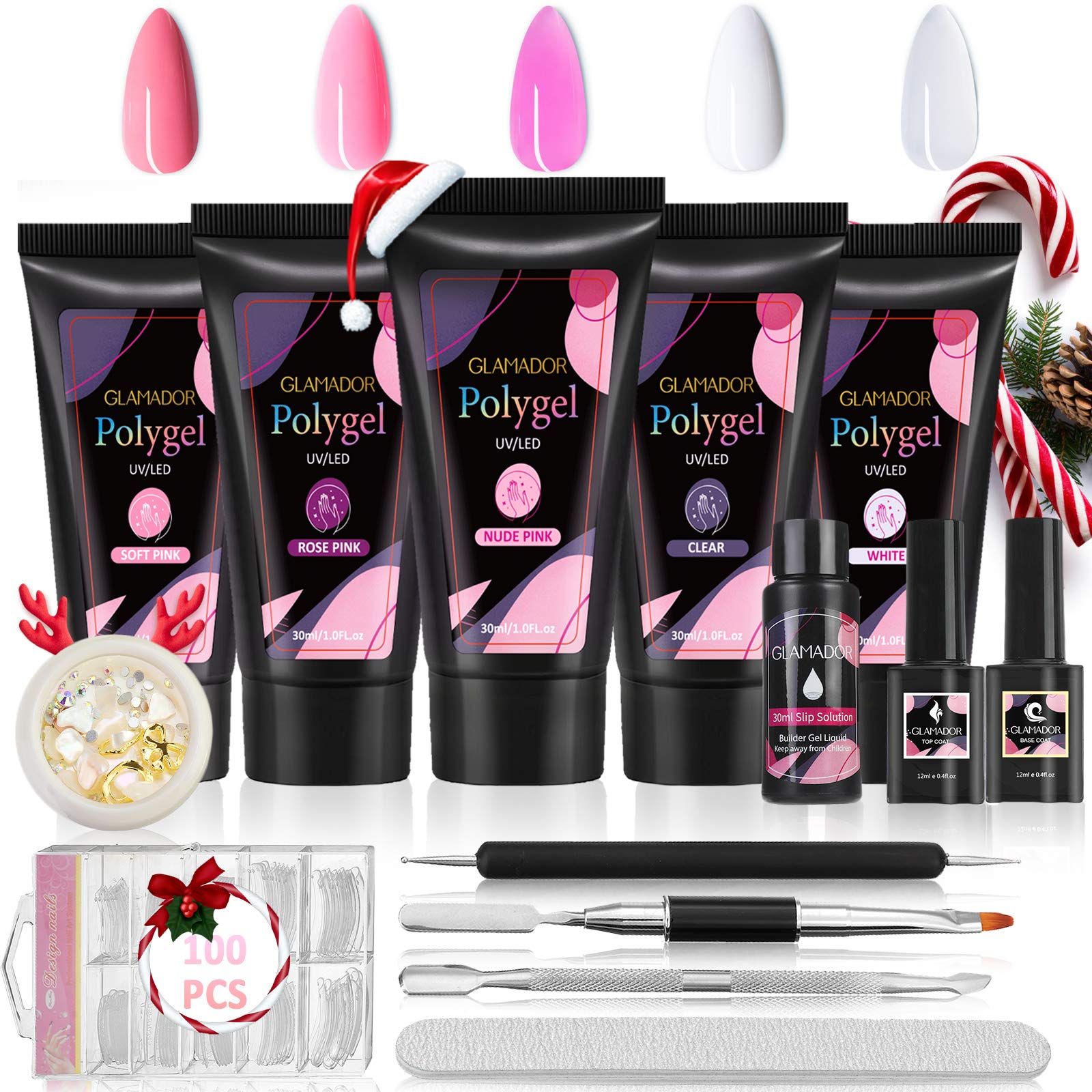 Poly Nail Extension Gel Kit,5 Color GLAMADOR Acrylic Gel Nail Set,Nail Enhancement Builder Gel Set All-in-One Manicure Kit, Home Salon Nail Art Starter/Professional Kit - 30g