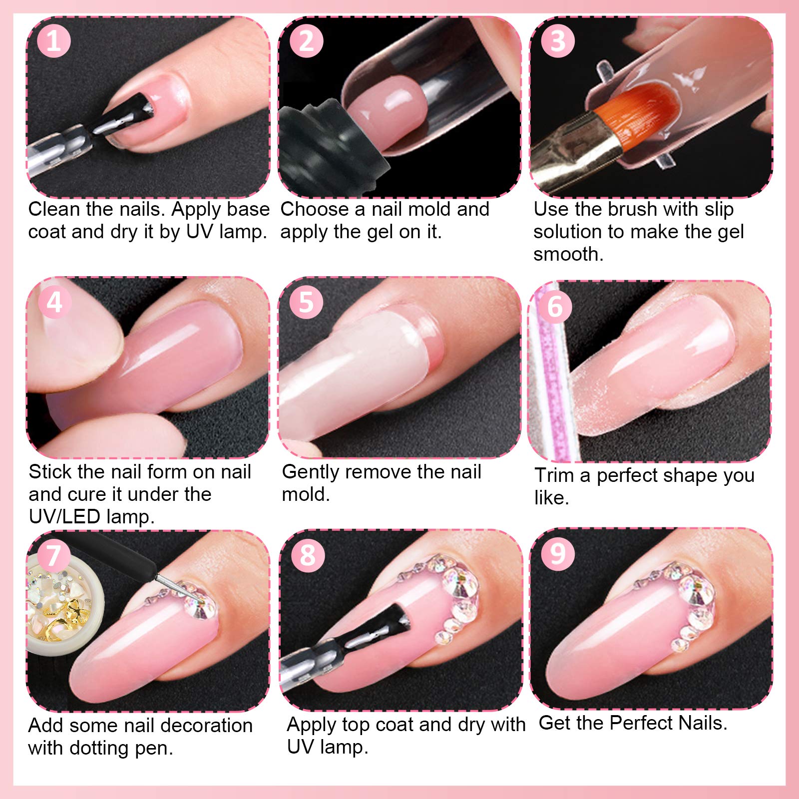 - ❁【Long-lasting】: This nail extension gel kit will last up to about 20-30 days or longer with proper operate. Fast and easy to use, it can make your nails feel natural, look pretty with nice length and neatness.