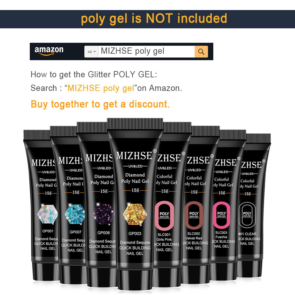 Poly Nail Gel Tools Quick Building Poly Builder UV Gel Tools Kit Finger Extension Tips Mold, DIY Poly Quick Gel Starter Set by MIZHSE Store
