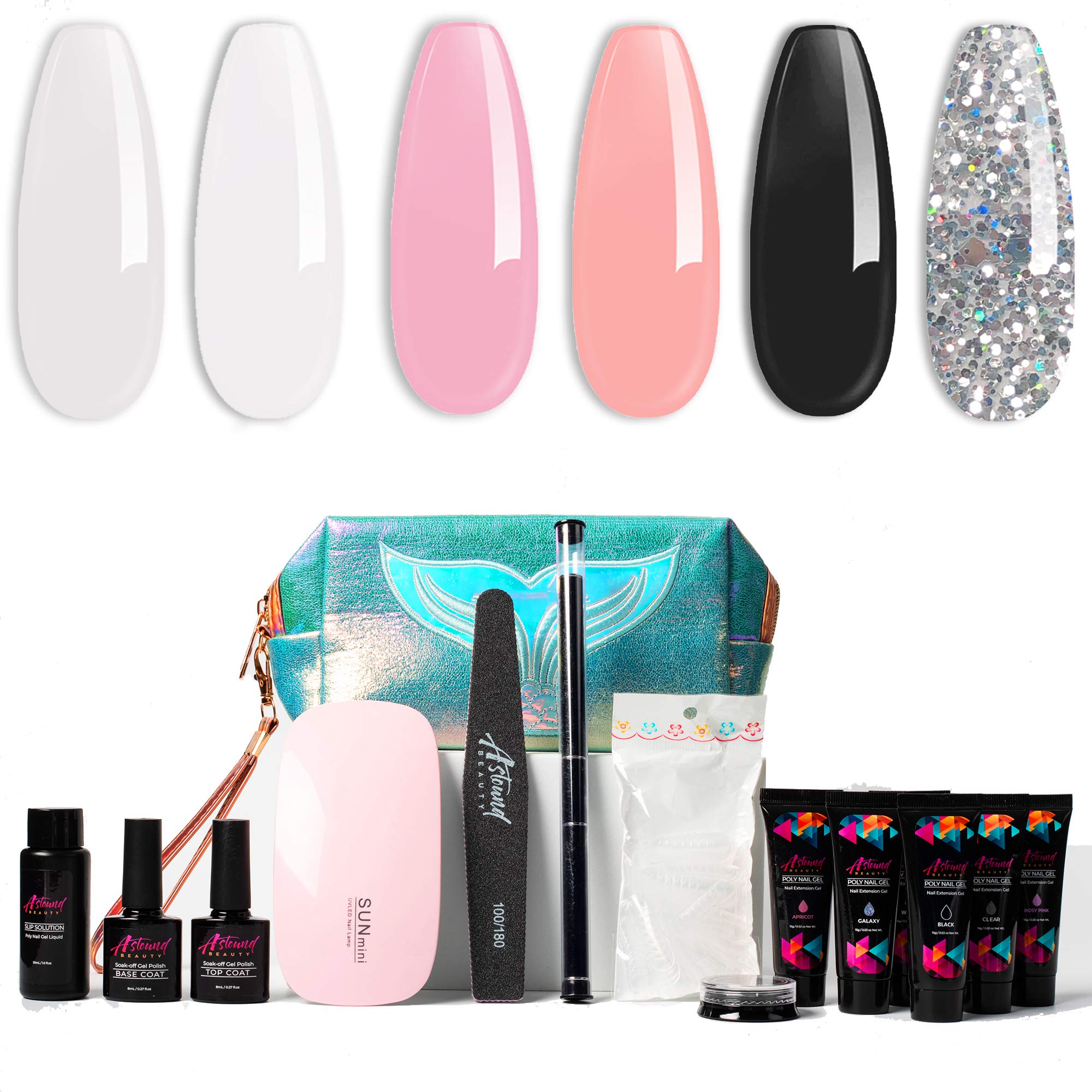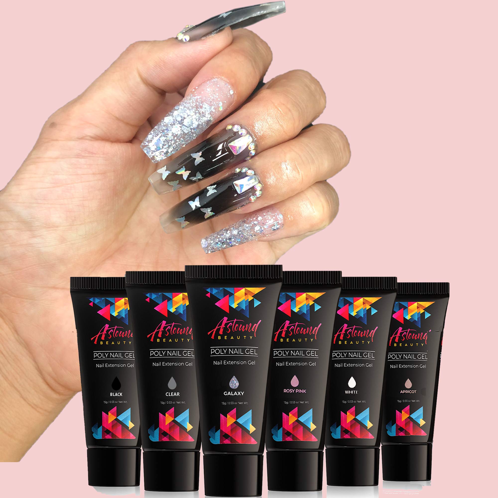 - CHIC COLORS AT YOUR FINGERTIPS - This poly gel kit contains clear, white, pink, black and glitter colors, create perfect nail for beginners