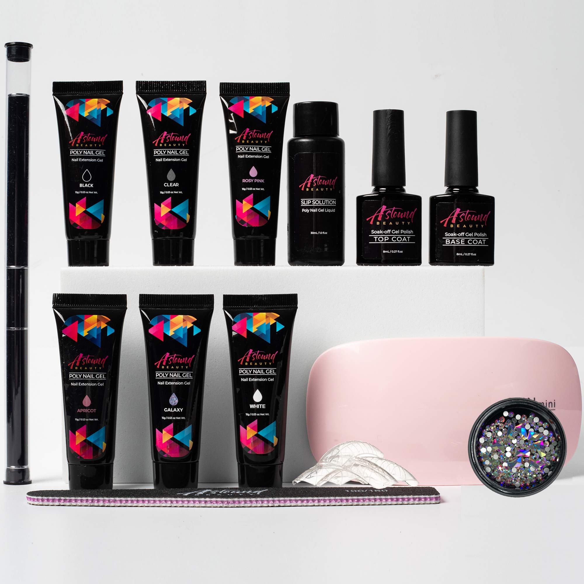 Astound Beauty brings you this premium all-in-one polygel nail kit so you can create stunning salon-worthy nails at home or traveling ! Choose your color and cure with the LED lamp for a polished, professional manicure.