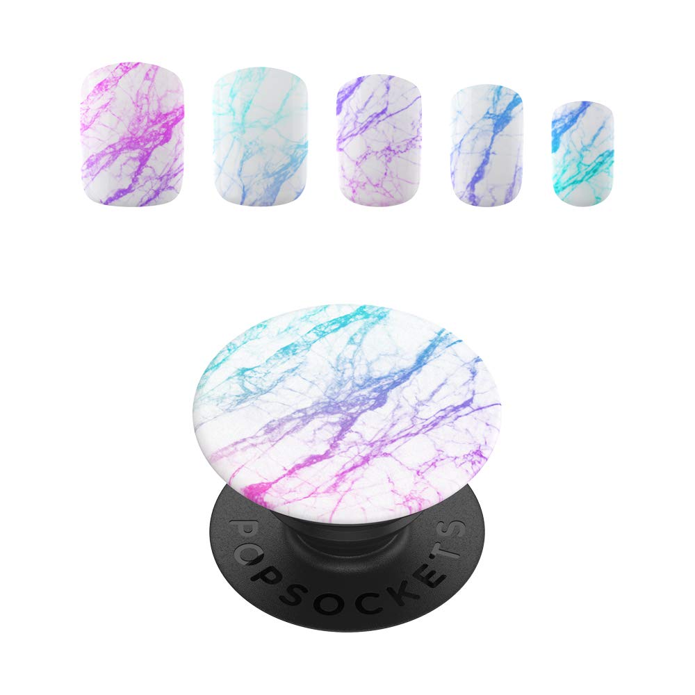 PopSockets: 30 Gel Nails and Matching PopGrip with Swappable Top for Phones and Tablets - Unicorn Marble Spectrum