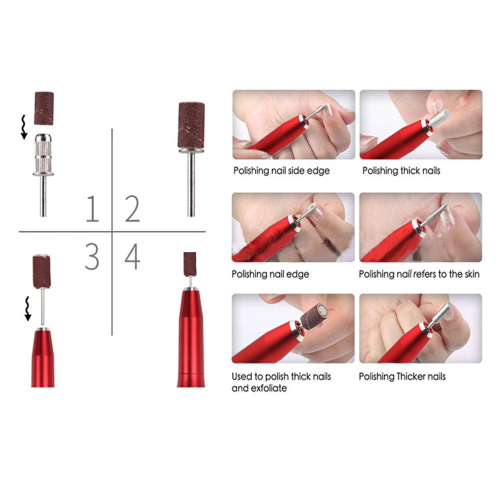 Portable Electric Nail Drill Set,Upgraded Professional Nail File With 6 Pieces Changeable Drills And Sand Bands Tool,USB Speed switch,Machine Electric Nail File for Home Salon Use(Red)