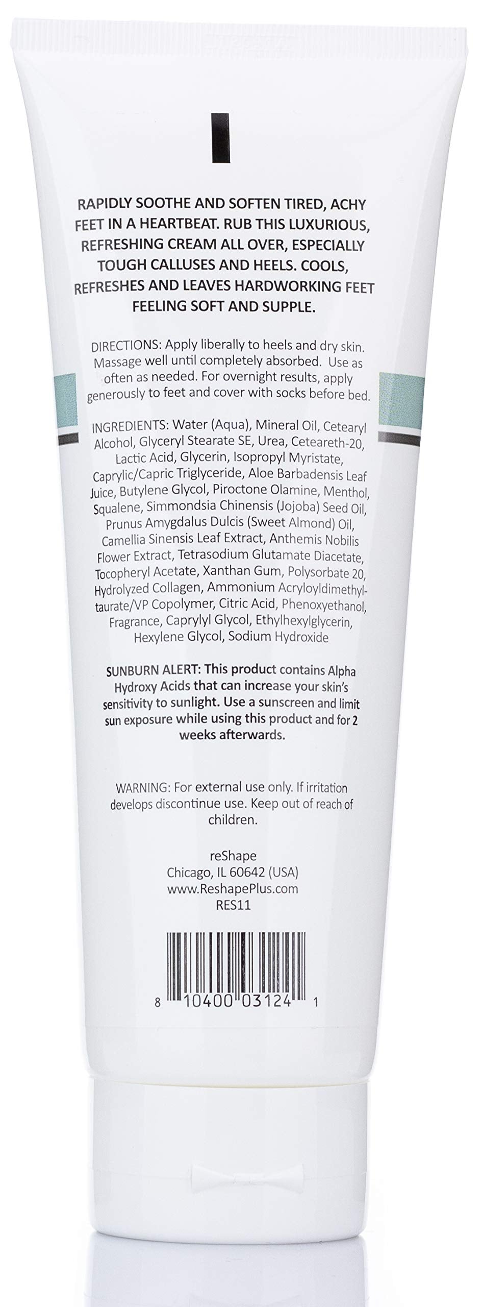Reshape+ Cooling Foot Cream with Lactic Acid, Menthol, Jojoba Oil, Almond Oil, and Vitamin E Exfoliating foot scrub- Great for Tired, Achy Feet without soaking. by Reshape+ Store