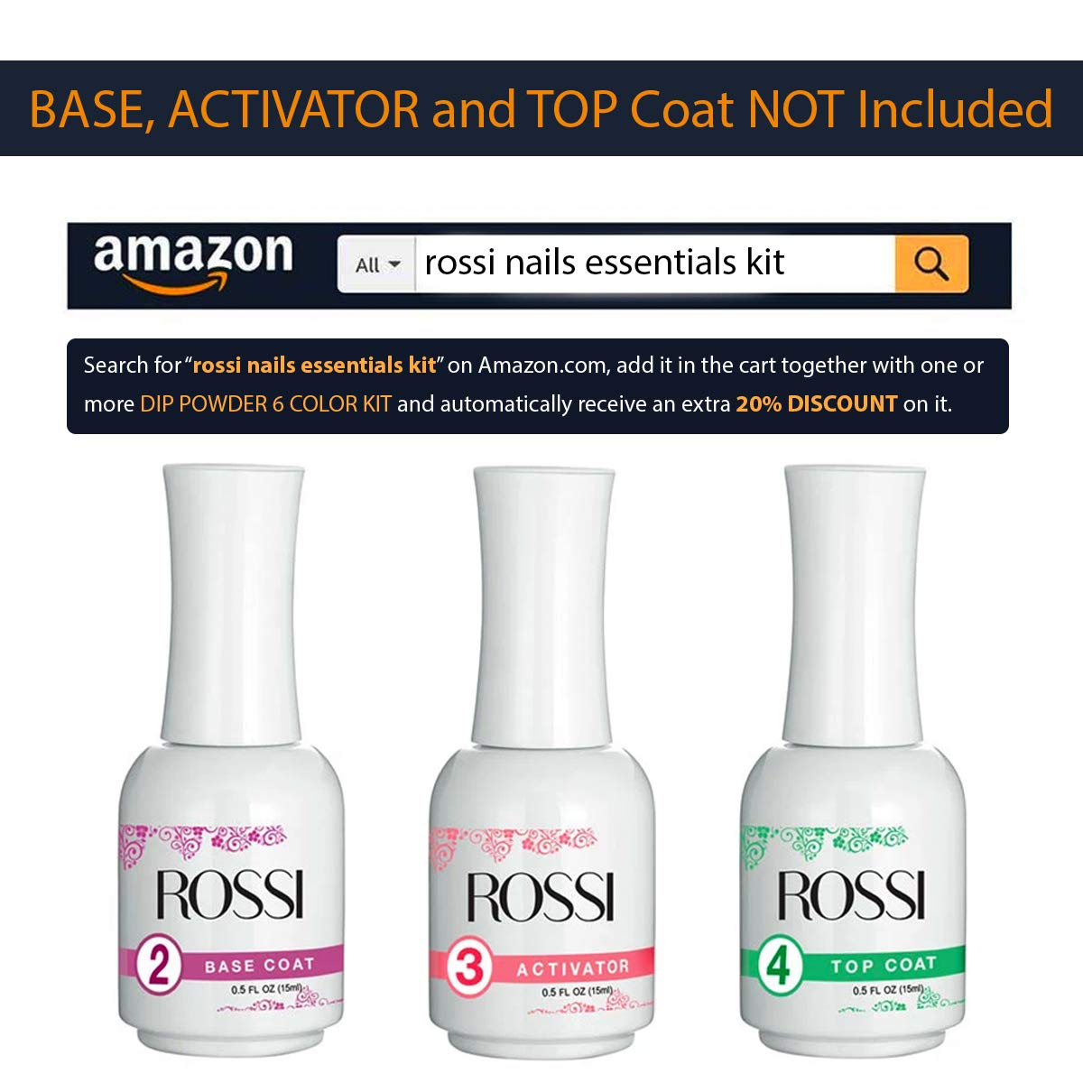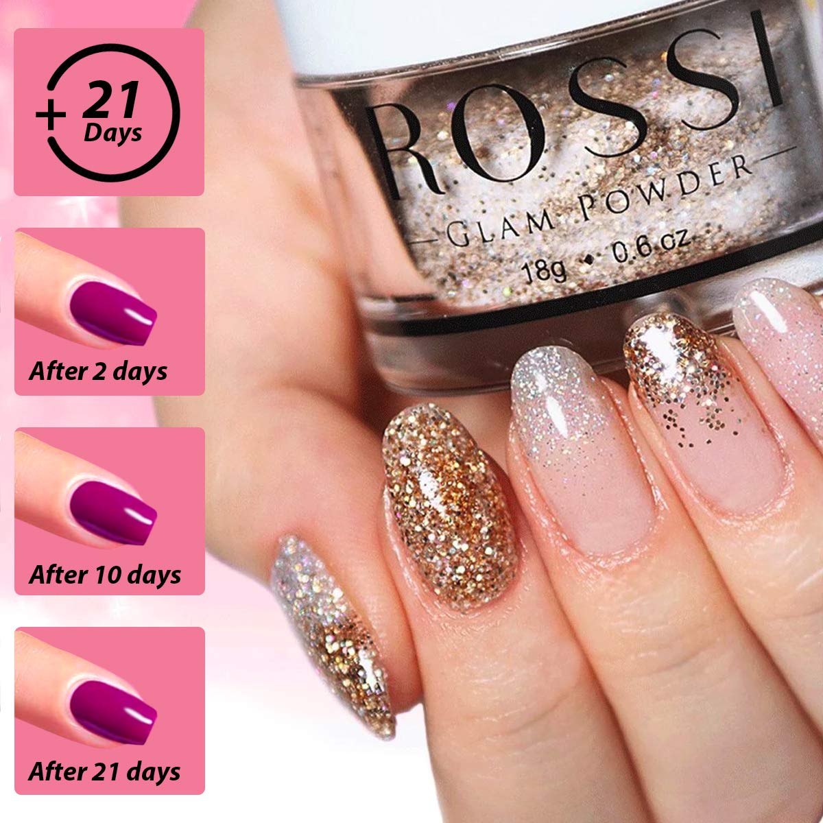 - ♡ EASY TO APPLY & NO CURING NEED - ROSSI dip powder system takes less time to apply than acrylic ones and at the same time, as NO UV/LED lamp for curing is required, your skin and nail will not be damaged. Ideal to handle for both professional and beginner users.
