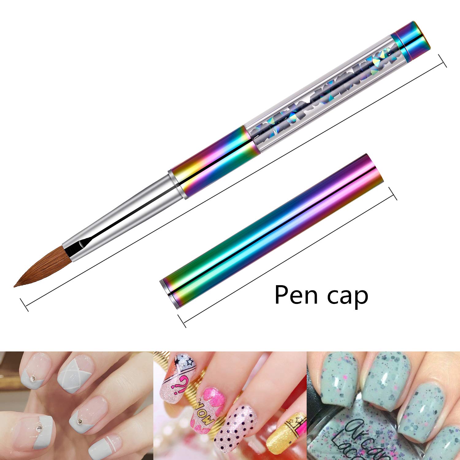 Shine Chance 100% Kolinsky Rainbow Rhinestone decorated in Handle Acrylic Brush Size 2#/4#/6#/8#/#10/#12/#14 Acrylic Brush Kolinsky Sable Nail Brushes (#14)