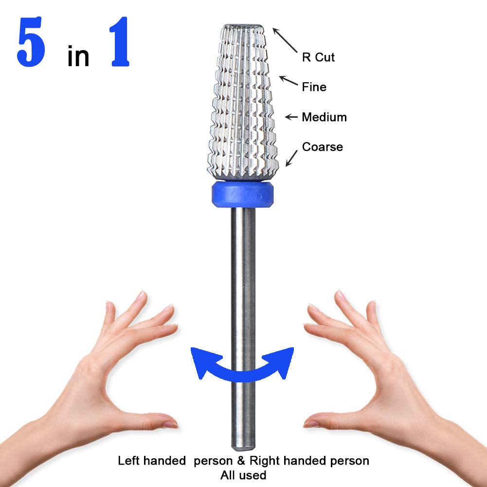 SpeTool Medium Grit 5 in 1 Rotary Bit 3/32" Shank Nail Dril for Left and Right Handed Acrylic or Hard Gel Remover