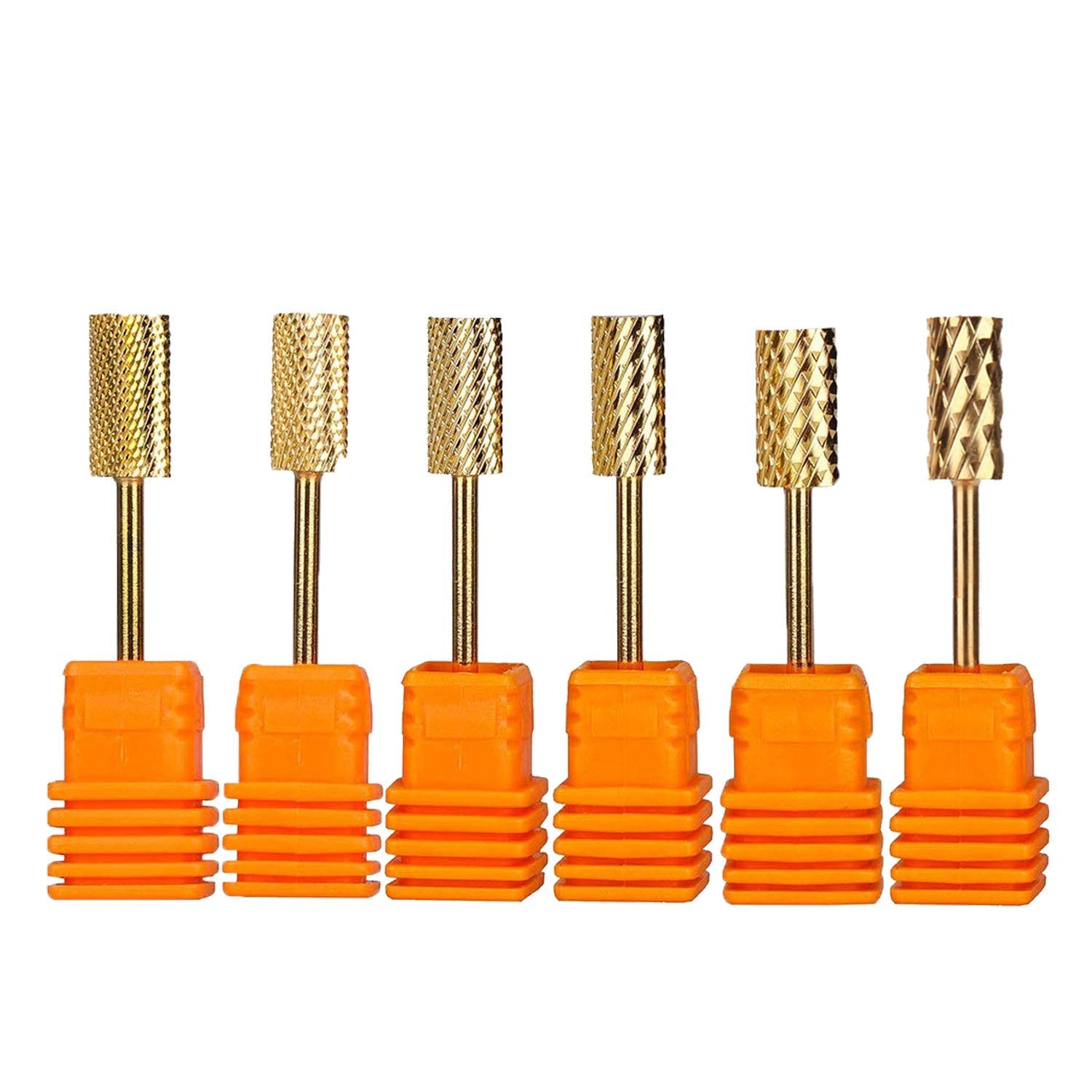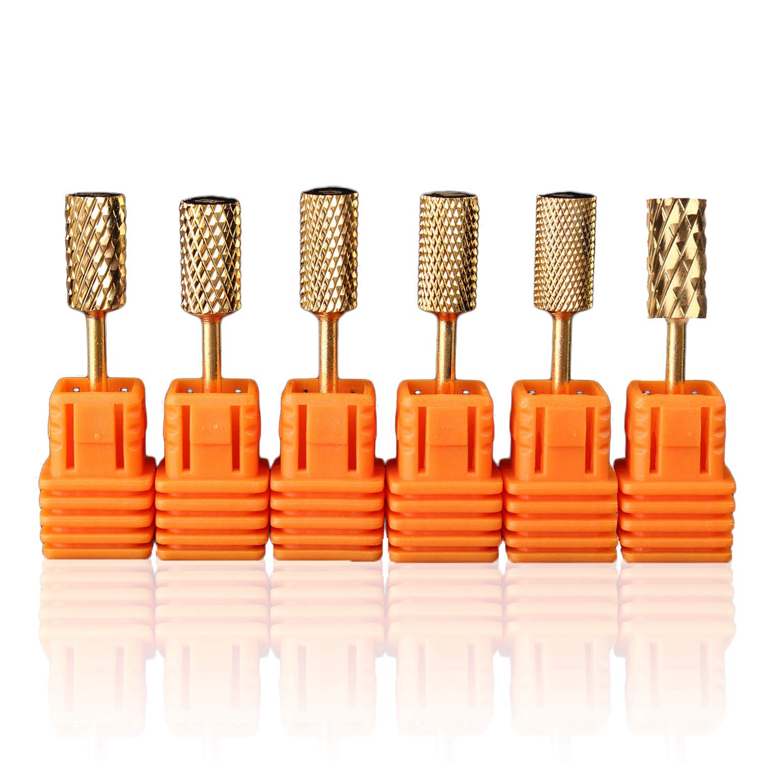 SUNTRADE 6Pcs Pro Electric Gold Carbide Nail Art Bit Tools 3/32''Nail Drill Bits Set