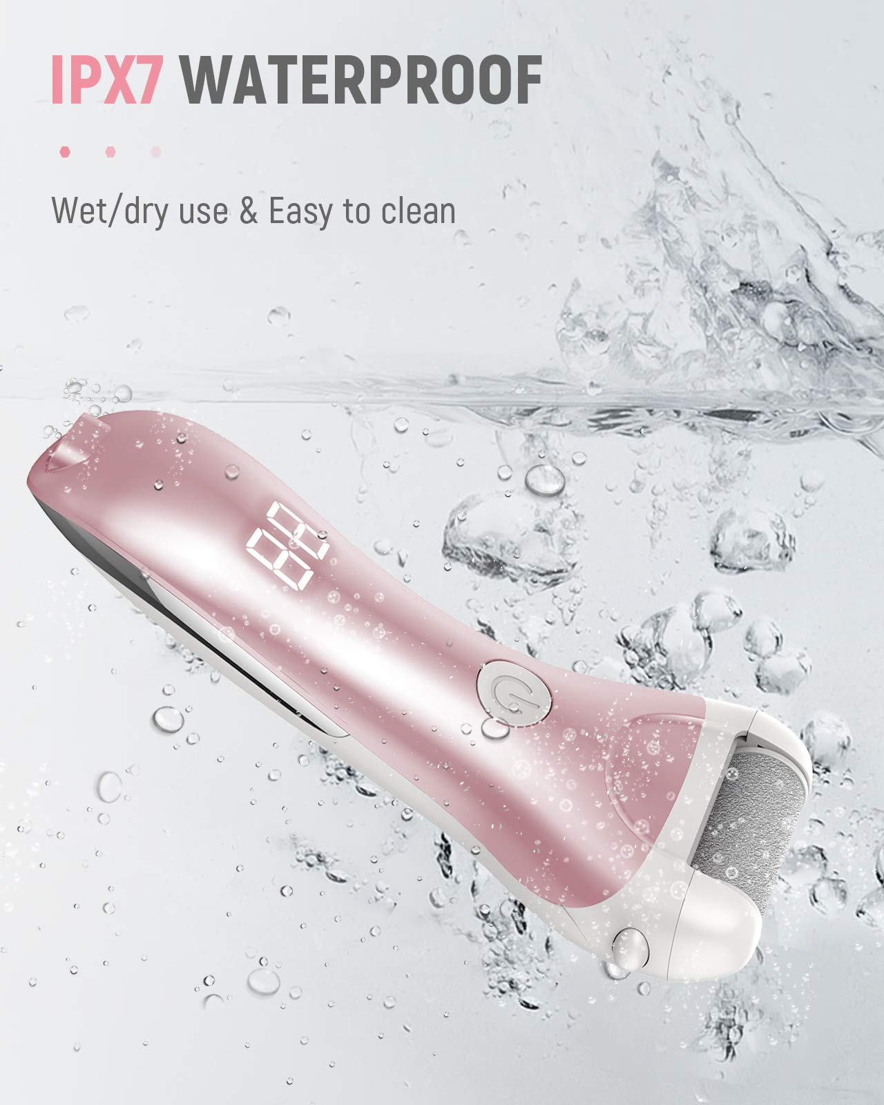 • {IPX7 Waterproof & Wet/Dry Use} IPX7 waterproof design support wet & dry use. It can be rinsed under running water and the detachable roller heads are easy to clean, which would effectively solves the problem of bacteria growing on the gaps and protects your foot health.