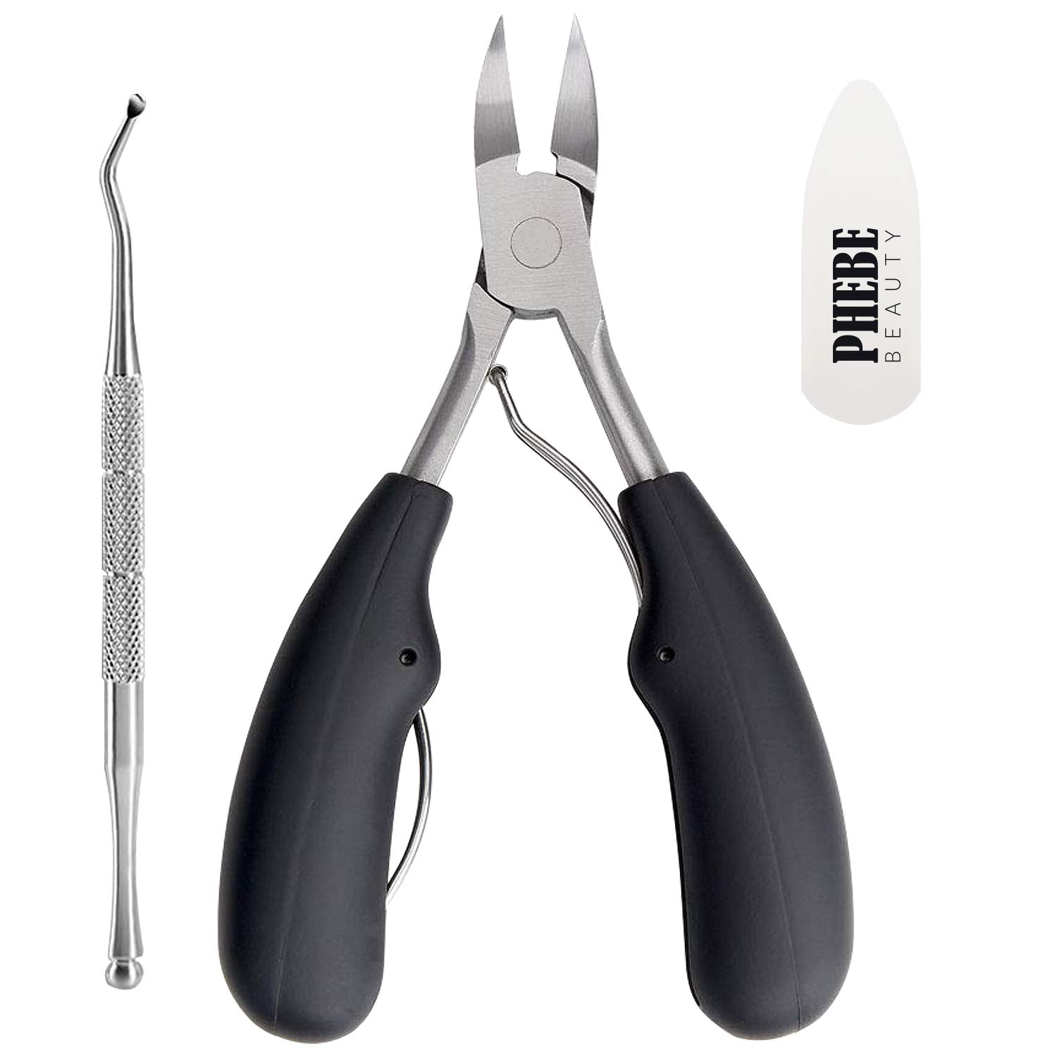 - COMBINATION FUNCTION : Phebe Toenail Clippers is a set that contains the tools necessary for trimming your nails. Nail tongs make it easy to cut grooved nails deep into the toenails. The nail lifter will also help remove dirt from the skin under your toenails.