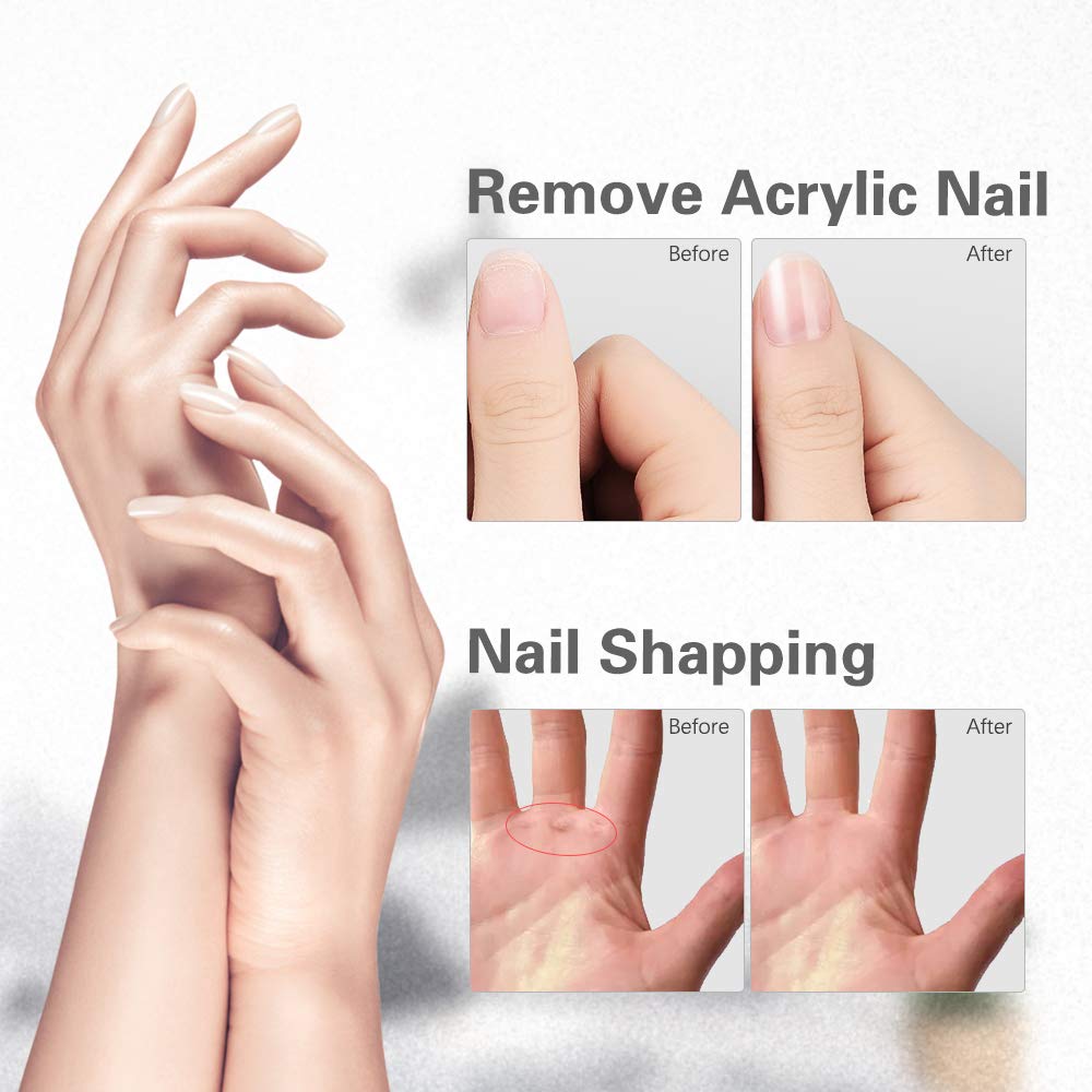 - IDEAL FOR NATURAL AND ACRYLIC NAIL SHAPING: It has a powerful electric motor with a max speed of 9000 rpm, quiet and smooth, perfect for natural and acrylic nail shaping,this unit will also smooth rough skin and callus, and will reduce overly thick finger nails.
