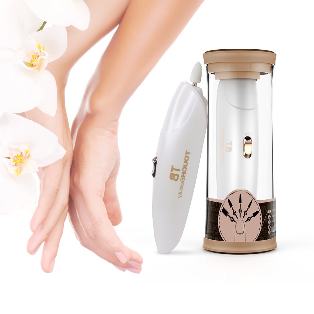 TOUCHBeauty Electric Nail File Drill Buffer Polisher Set with LED Light, 5in1 Professional Manicure Pedicure Set, Fingernail Toenaill Care Tools Cordless Battery Operated Golden TB-1333