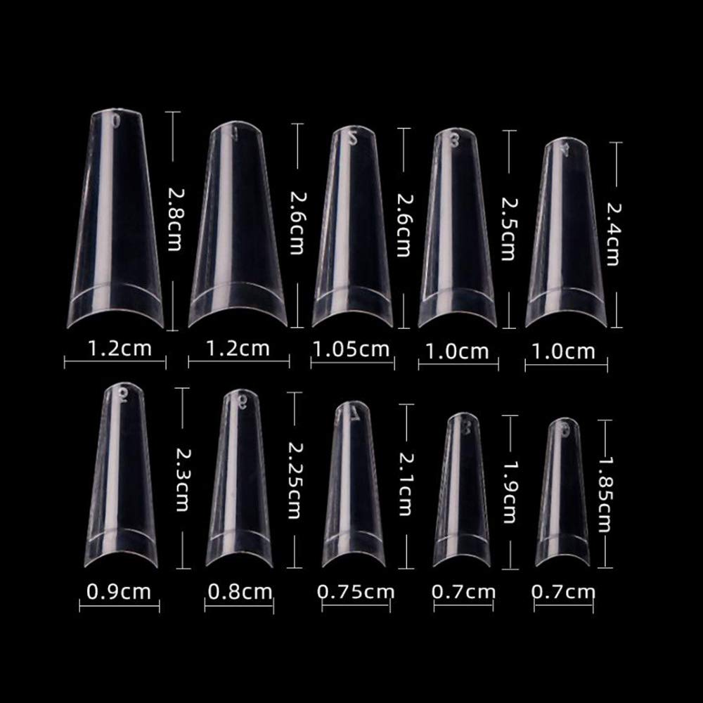 - Unique And Novel Design: Flake nails stiletto long The head is narrow and flat, and the tail is wide. It combines the design of nail extension tips and coffin shaped nails, and the upgraded version of french nail tips half cover can enhance your hands The shape, full-fit design fits most people's hands