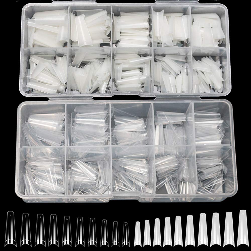 Vcedas Fake Nail Coffin Shape Long 500PCS Clear/Natural False Nails Tips Lady French Style 10 Sizes Half Cover False Nails Artificial for DIY Nail Salon Art(1000PCS)