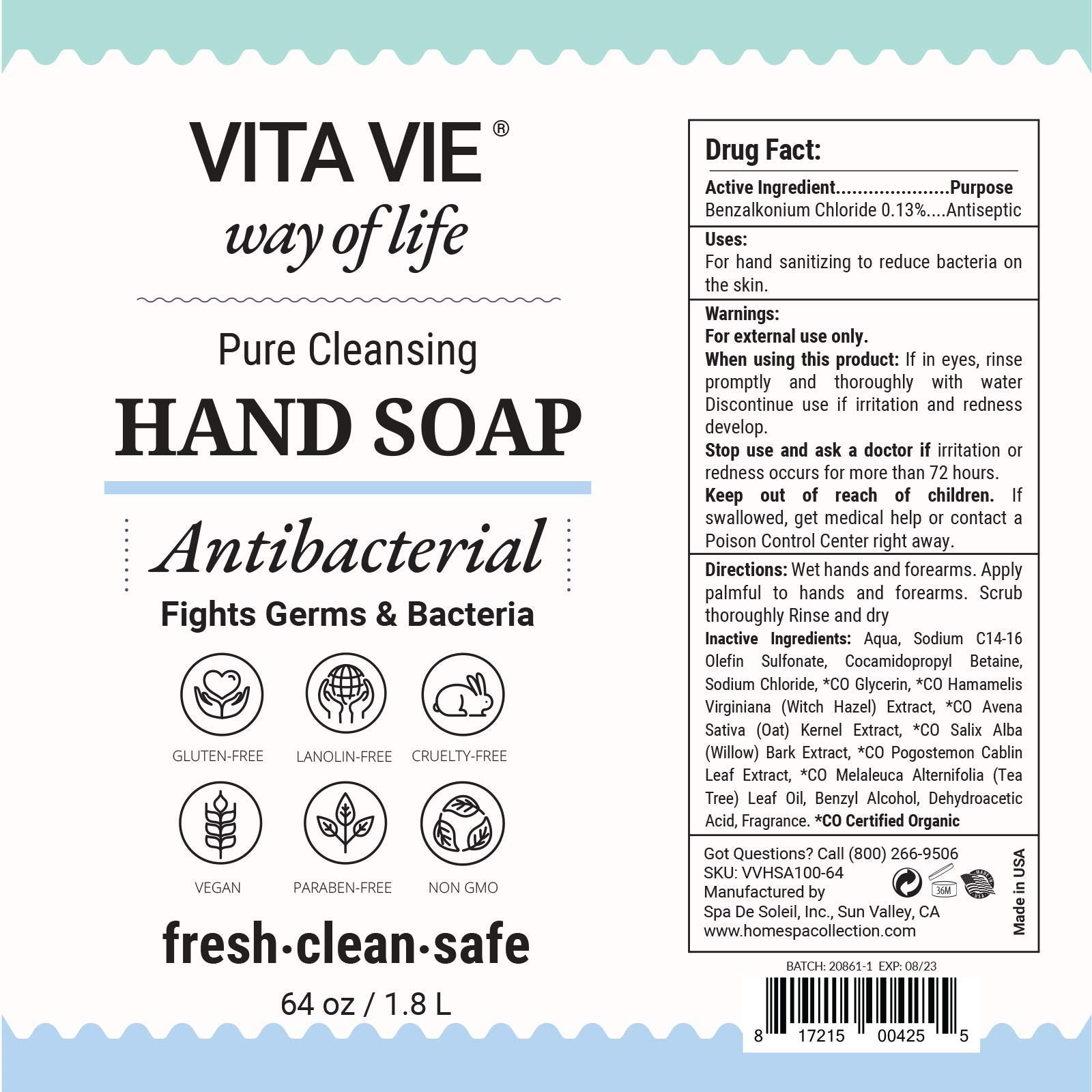 • ANTIBACTERIAL HAND SOAP: The Vita Vie cleansing hand soap is a nourishing formula that works to remove germs and harmful bacteria from hands, without overly drying the skin.