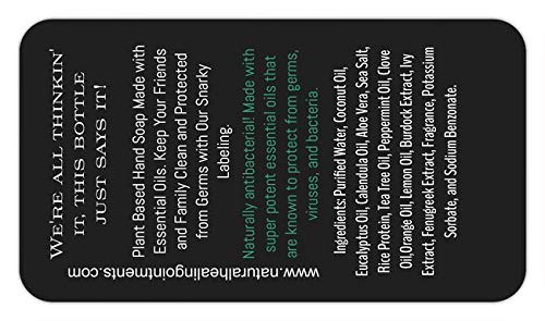 - 2-8 oz. Bottles of natural liquid hand soap. Funny "wash your hands dummy" antibacterial liquid hand soap. Made with safe, natural essential oils. Light citrus scent.