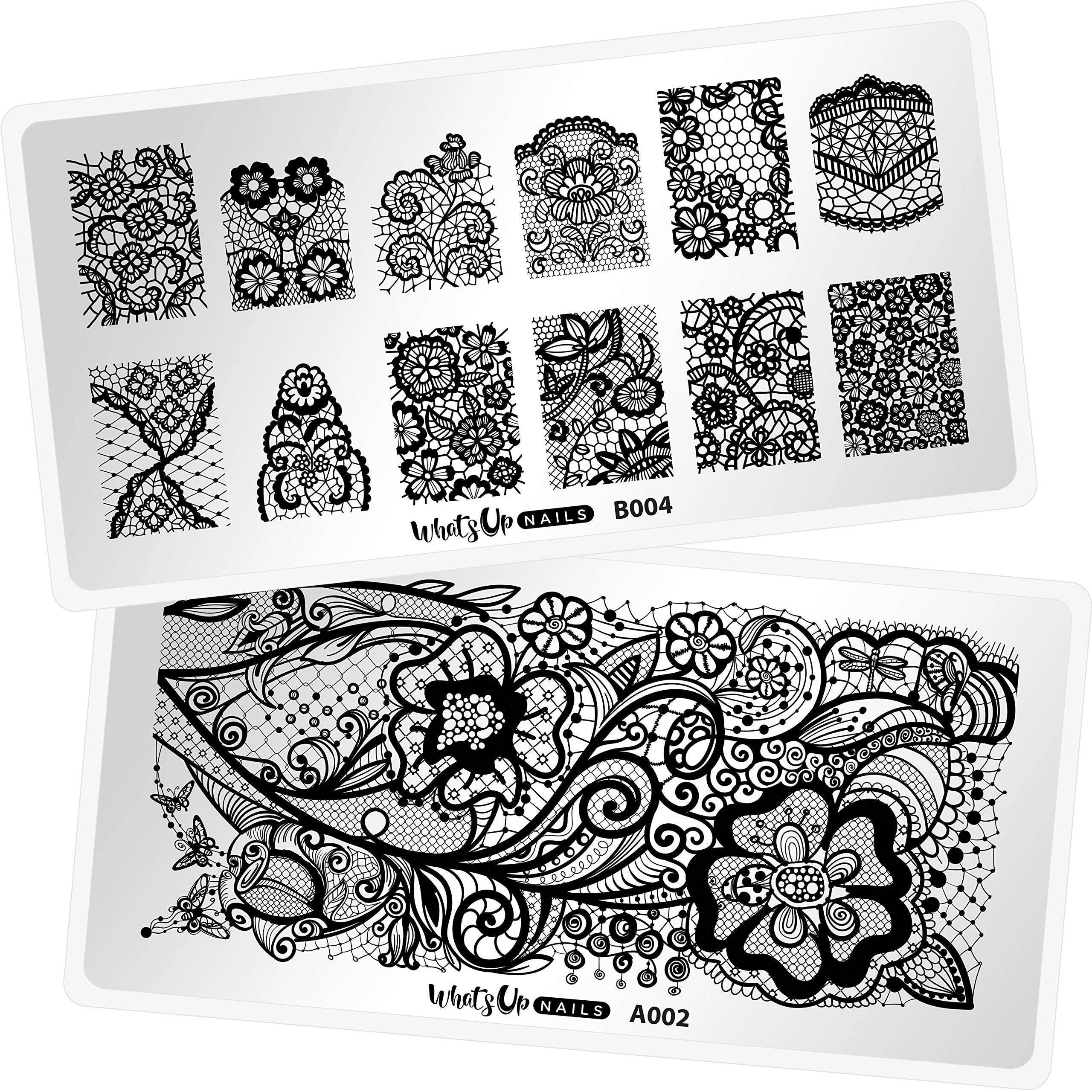 Whats Up Nails - Lace Stamping Plates 2 pack (A002, B004) for Nail Art Design