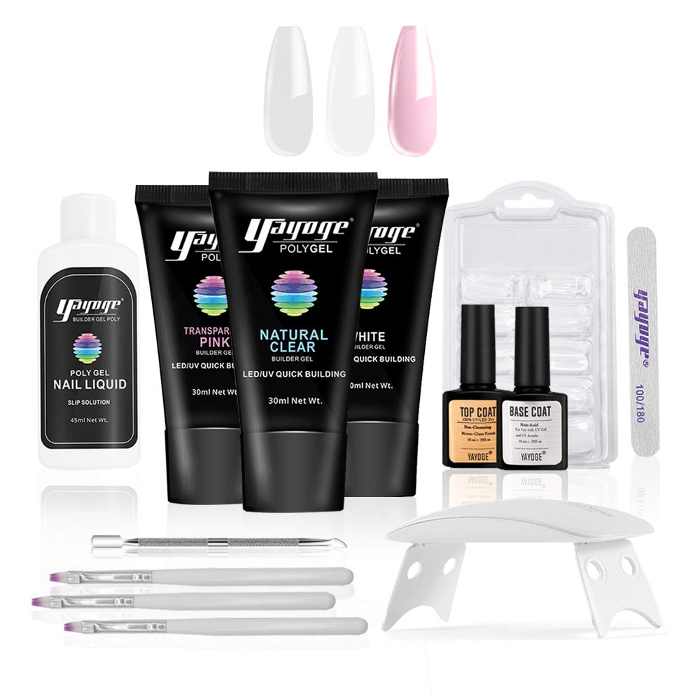 Yayoge Poly Nail Extension Gel Kit Nail Enhancement Builder Gel with Slip Solution and LED UV Nail Lamp All-in-one French Nail Art Design Beginner Kit