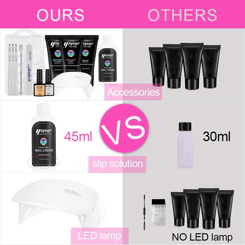 Yayoge Poly Nail Extension Gel Kit Nail Enhancement Builder Gel with Slip Solution and LED UV Nail Lamp All-in-one French Nail Art Design Beginner Kit by yayoge Store