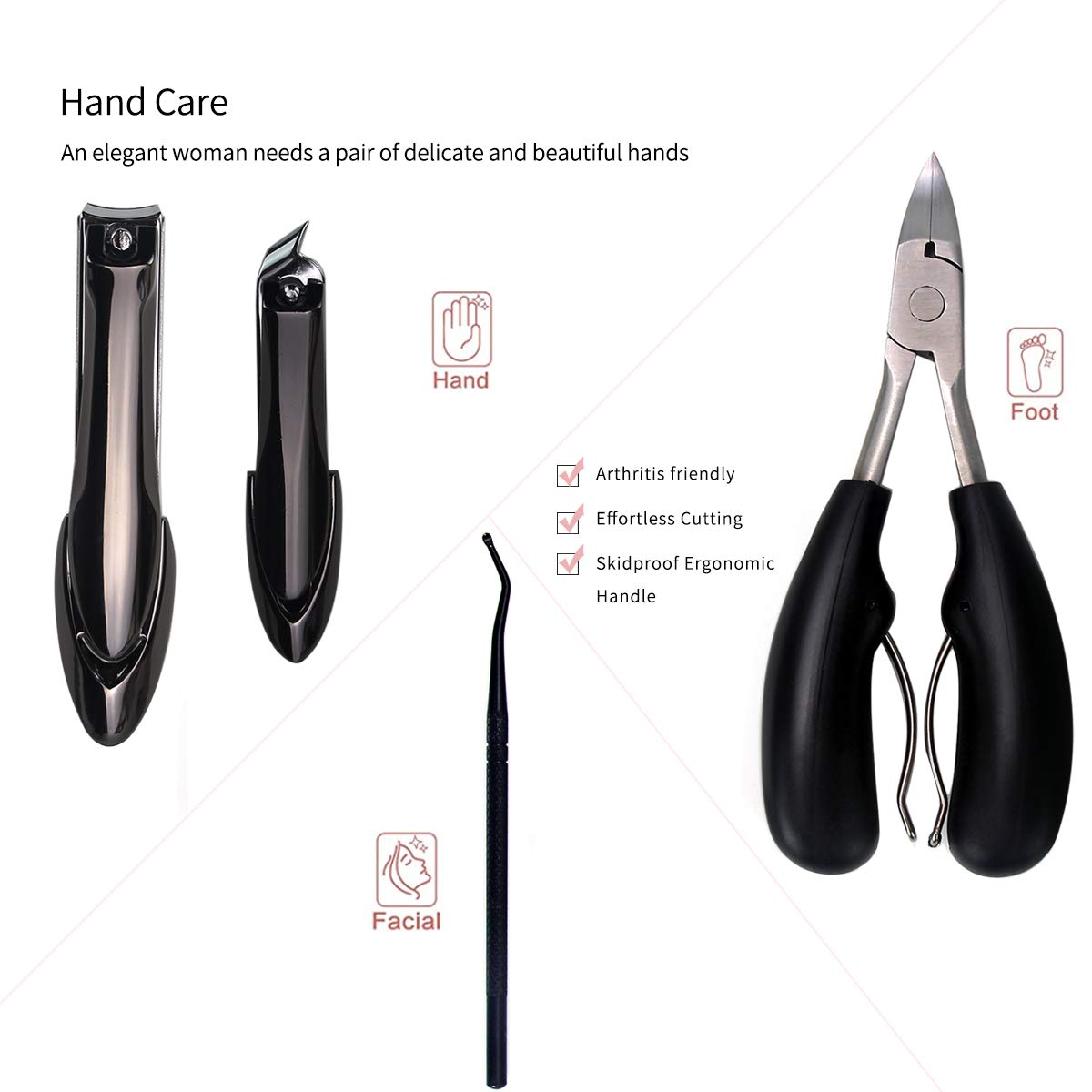 - 【Extended Size & Easy to Use】Based on the effort of leveraged design of human body handle.a larger size, plus a comfortable non-slip grip, allows for an effortless and easy usage. with no more tearing or jagged nails.Suitable for thick nails, hard toenails,Ingrown Nails.
