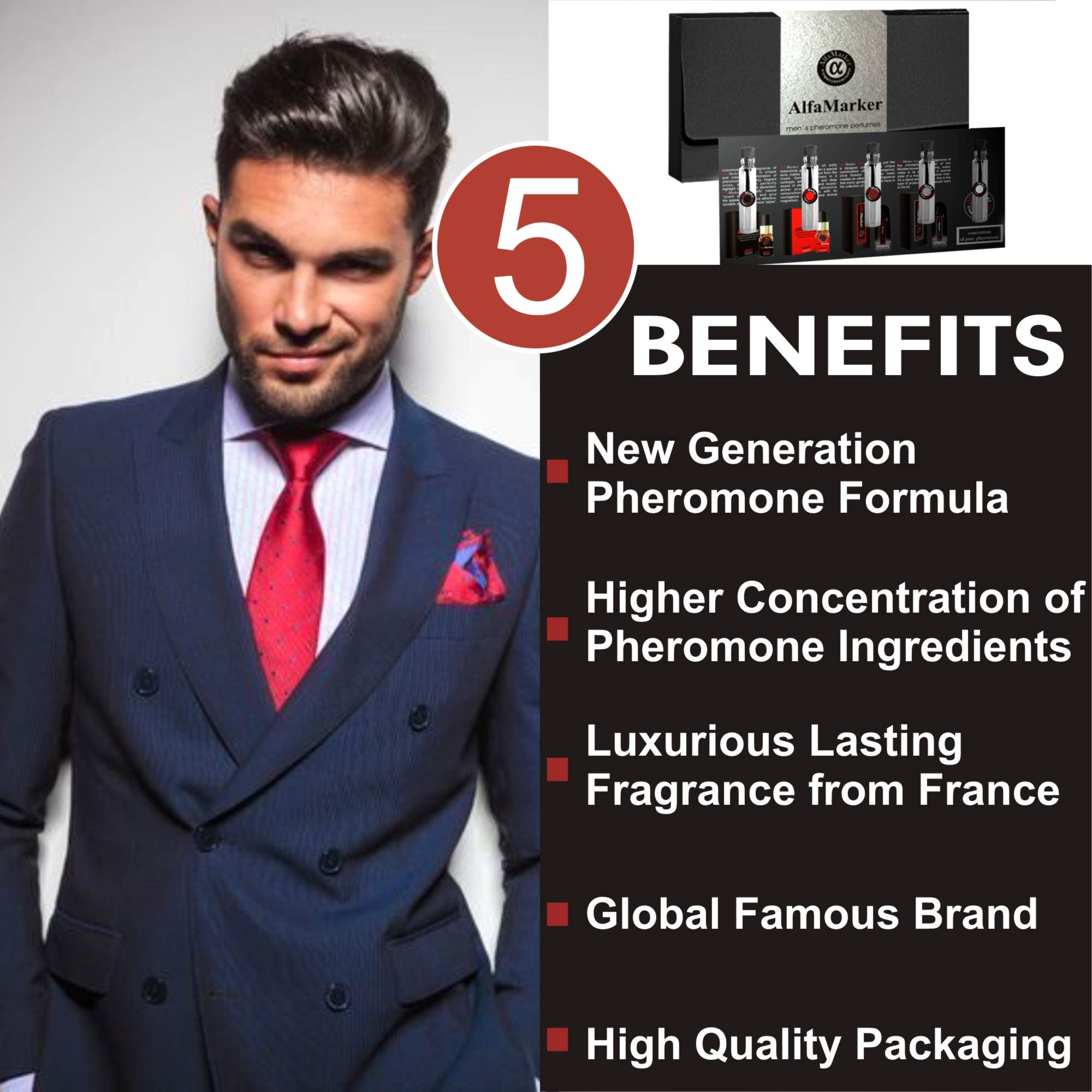 Alfamarker Pheromones for Men Perfume Set to Attract Women. 5 Male Pheromone Perfumes x 2ml. 4 Oil Based Mens Extra Pheromones Perfume Formula +1 Pure Pheromone Unscented Oil Essence Formula for Him