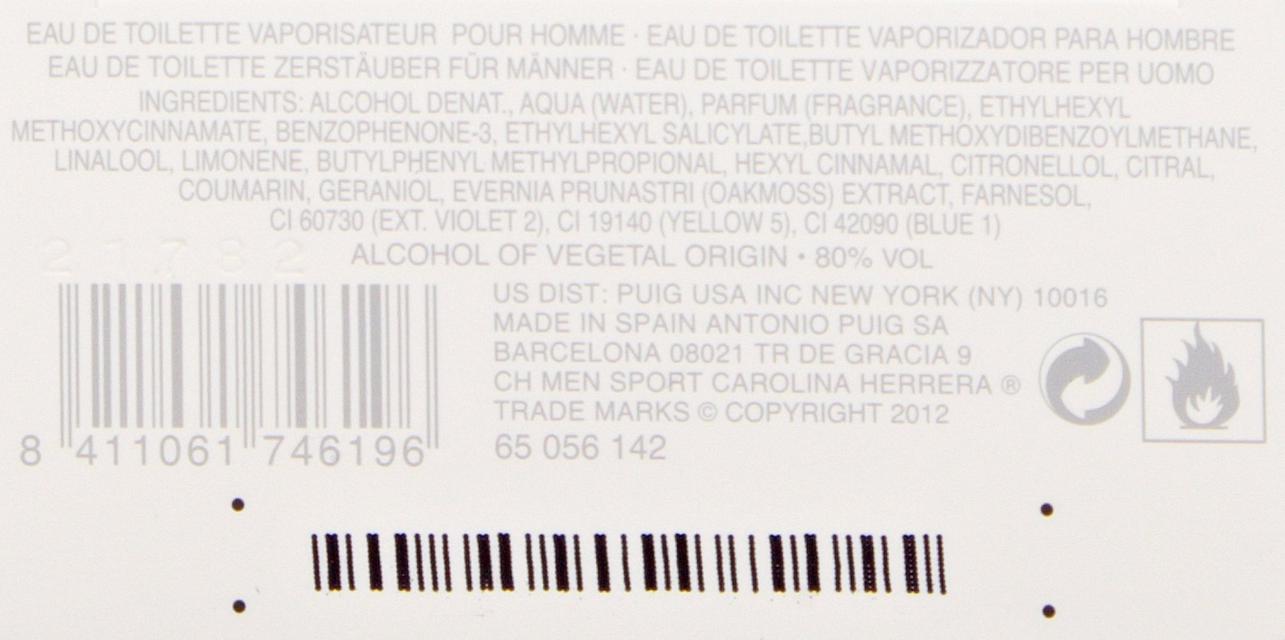 Carolina Herrera Ch Sport Eau de Toilette Spray for Men, 3.4 Ounce