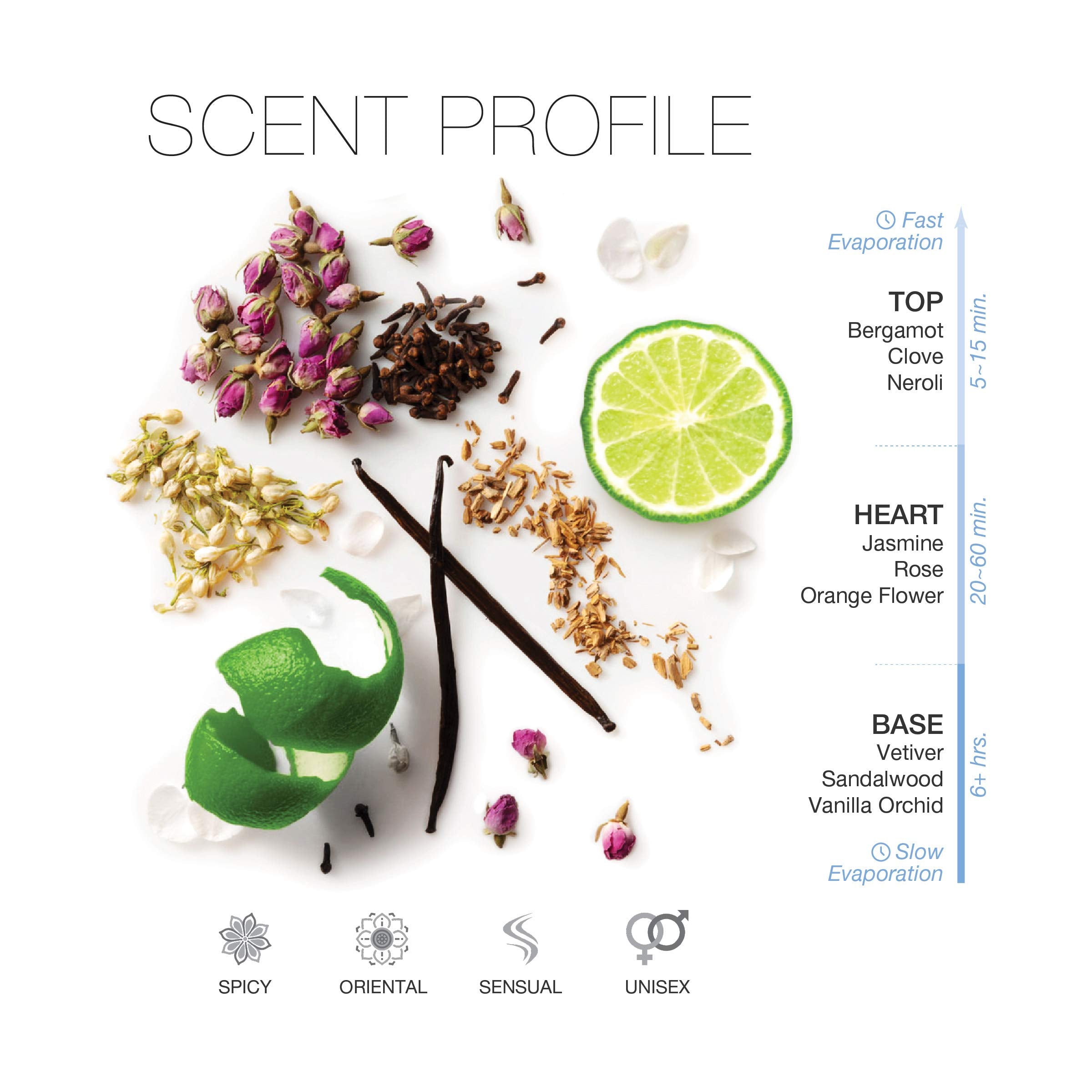 A scent as sexy and iconic as its inspiration. Flirty, sensual, meditative, and serene, the scent defies a single category, like Cher herself. Vibrant notes of bergamot and neroli meet the intimate florals of jasmine and rose and smoke and spice of sandalwood and clove. In all, captivating.