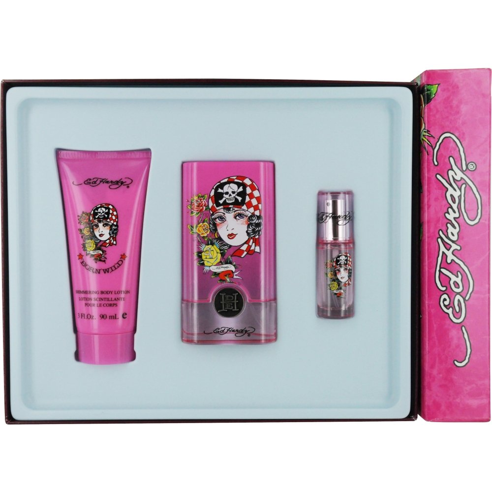 - Christian Audigier Ed Hardy Born Wild Set (Eau De Parfum Spray and Shimmer Body Lotion and Eau De Parfum Spray Mini)