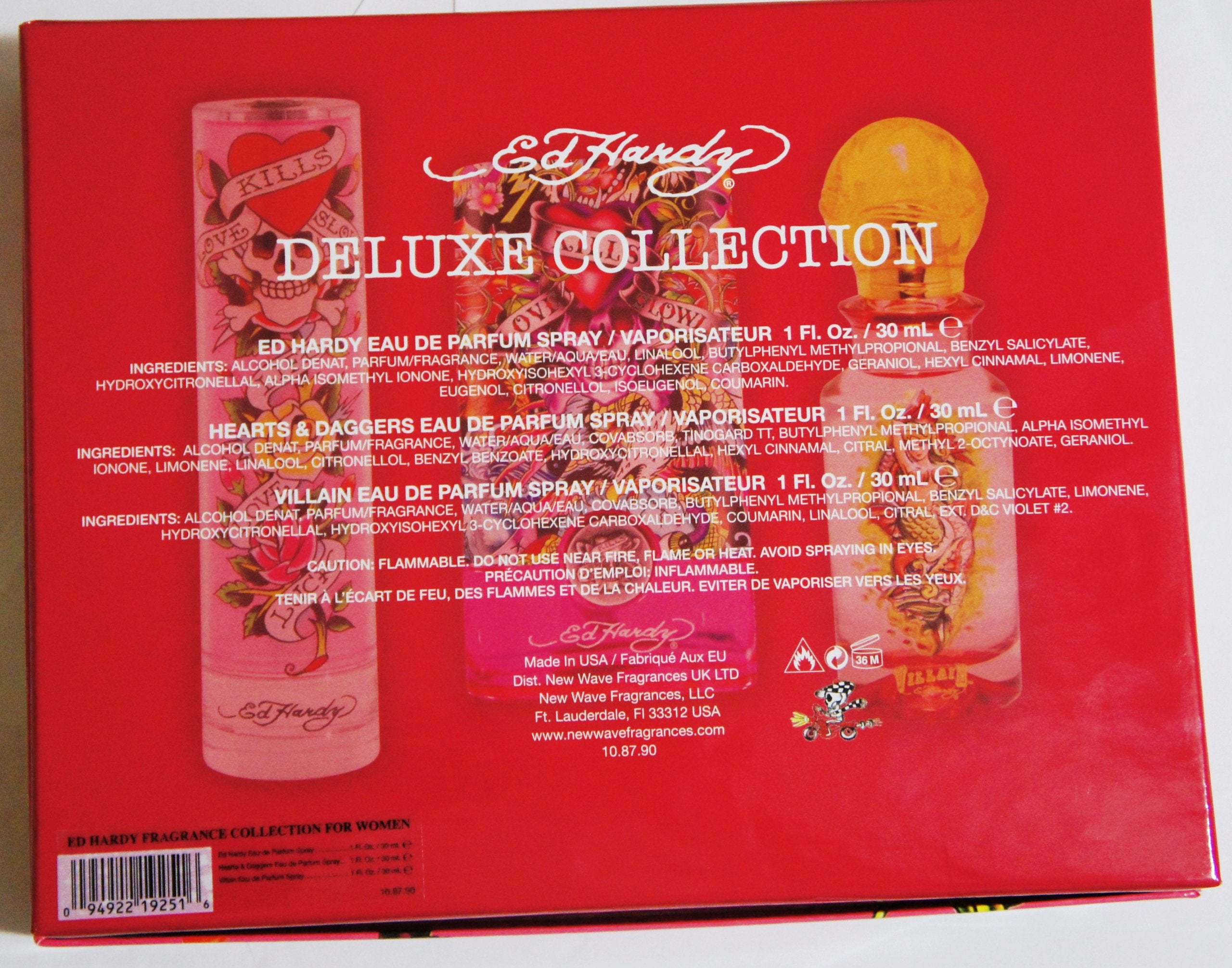 - Ed Hardy 3-Piece Deluxe COLLECTION Perfume Gift Set for Women (Ed Hardy 1FL OZ EDP Spray, HEARTS & DAGGERS 1 FL OZ EDP SPRAY & VILLAIN 1 FL OZ EDP SPRAY)