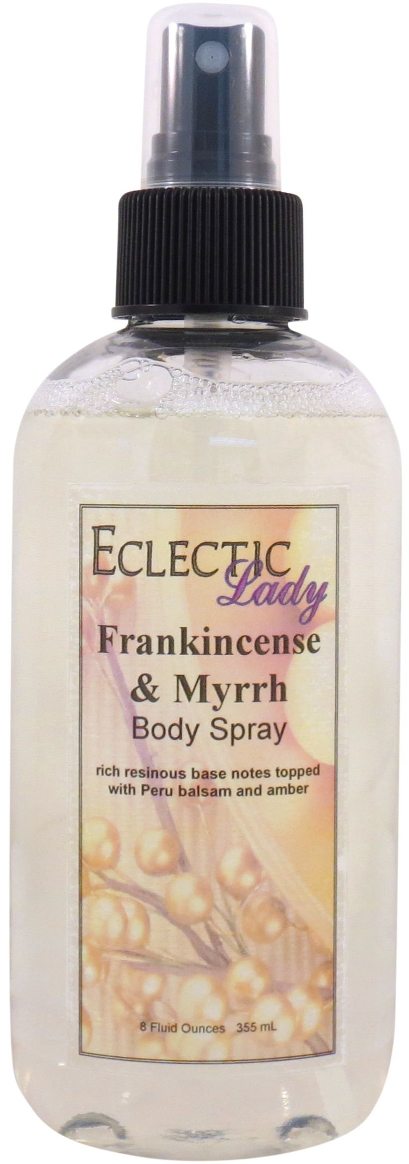 The quintessential holiday blend. Rich resinous base notes topped with Peru balsam and amber for a bit of sweetness. Subtle, yet satisfying! Our body spray adds a little bit of moisture to your skin along with a light fragrance. Our Double Strength formula contains double the fragrance of our original body sprays for people who like a stronger body spray. All of our products are made to order. To avoid leakage in transit, Eclectic Lady tapes all caps on our sprays and places each bottle into it's very own reclosable bag.