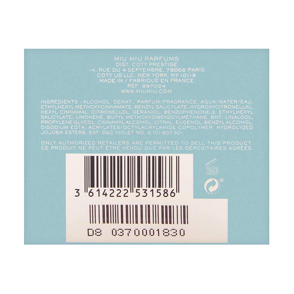 Miu L'Eau Bleue by Miu Parfums for Women 1.7 oz Eau de Parfum Spray Miu Parfums Country of origin is Italy Brand: Miu Miu Miu Miu L'Eau Bleue by Miu Parfums for Women 1.7 oz Eau de Parfum Spray
