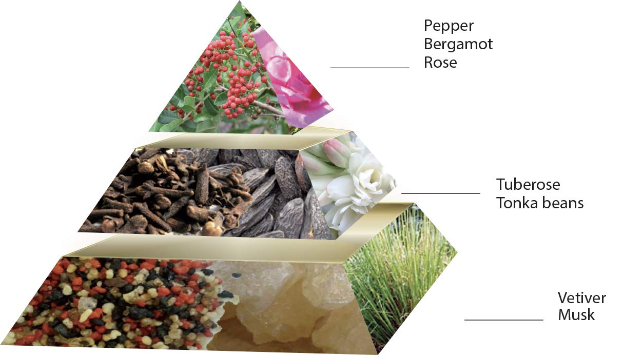 - Leads into middle notes of clove, tuberose and tonka beans.