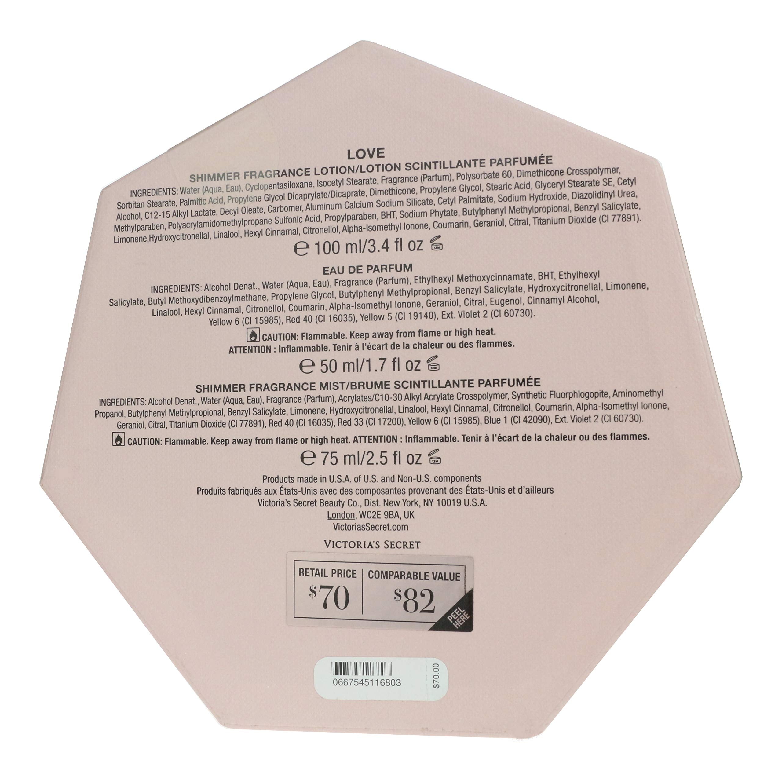 Victoria's Secret LOVE 3-piece Signature Gift Set, EDP,Shimmer Mist, Shimmer Lotion